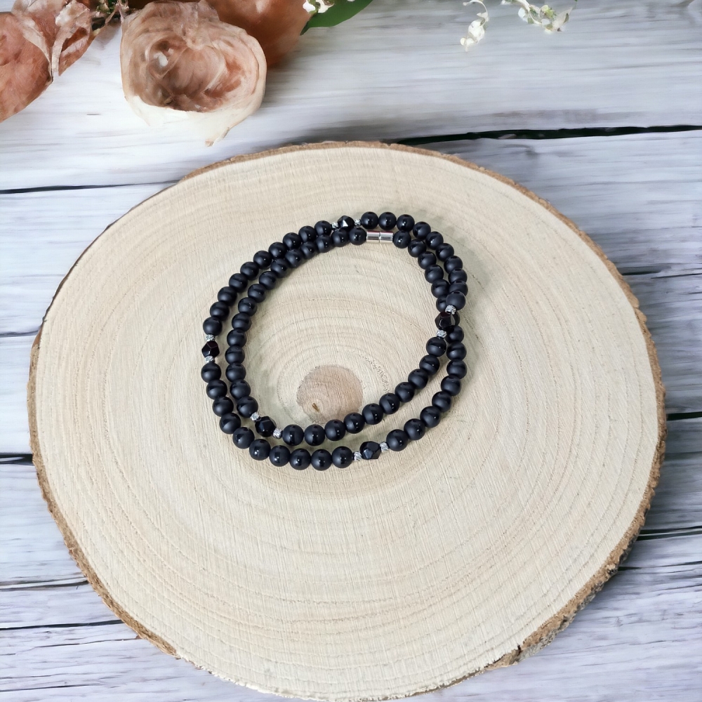 Agatul negru si onixul sunt cunoscute pentru proprietatile lor de protectie si stabilitate, oferindu-ti un suport subtil in fata provocarilor cotidiene. Colierul din pietre semipretioase devine astfel nu doar o declaratie de stil, ci si un simbol al fortei interioare si al rabdarii.