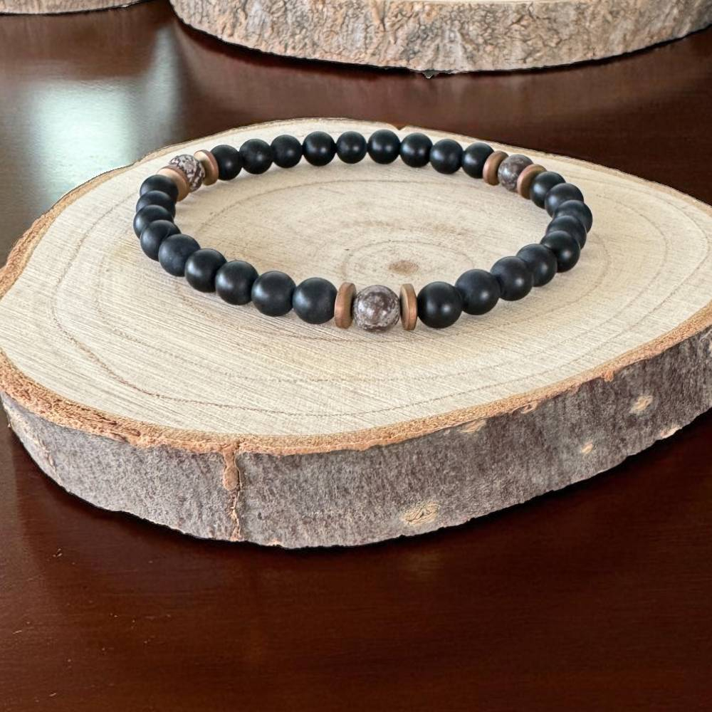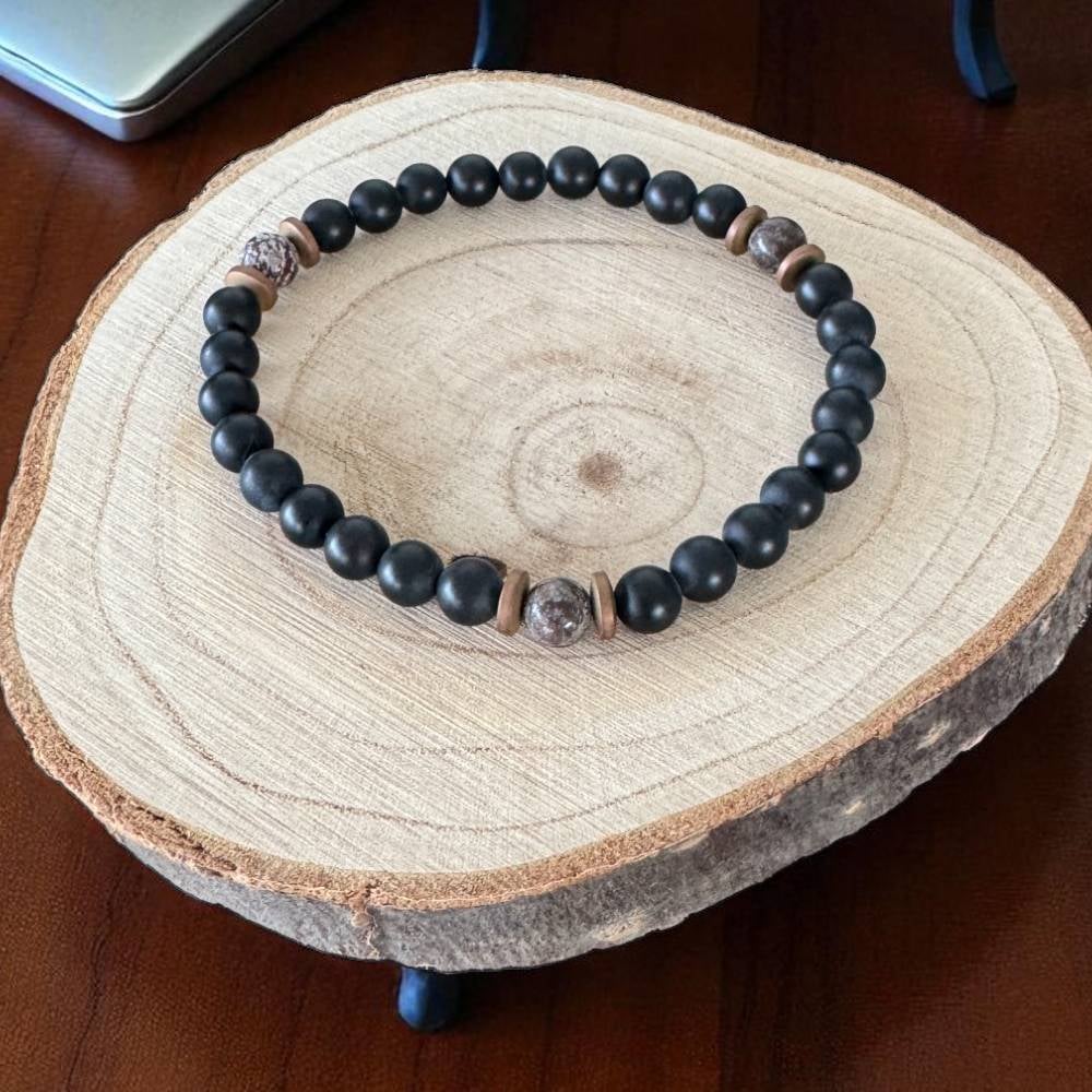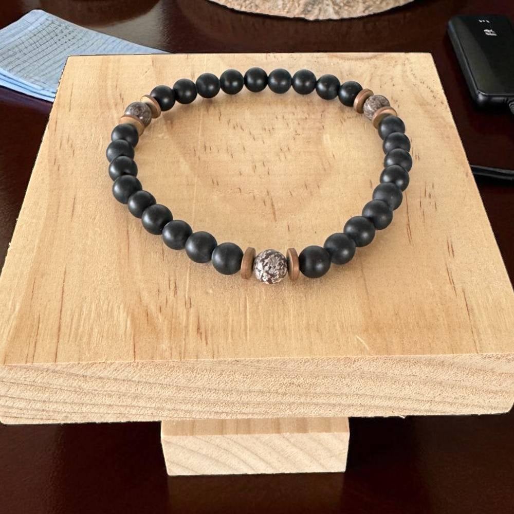 Bratara Barbati Soren din Onix Mat si Obsidian Maro Snow Flake cu hematit