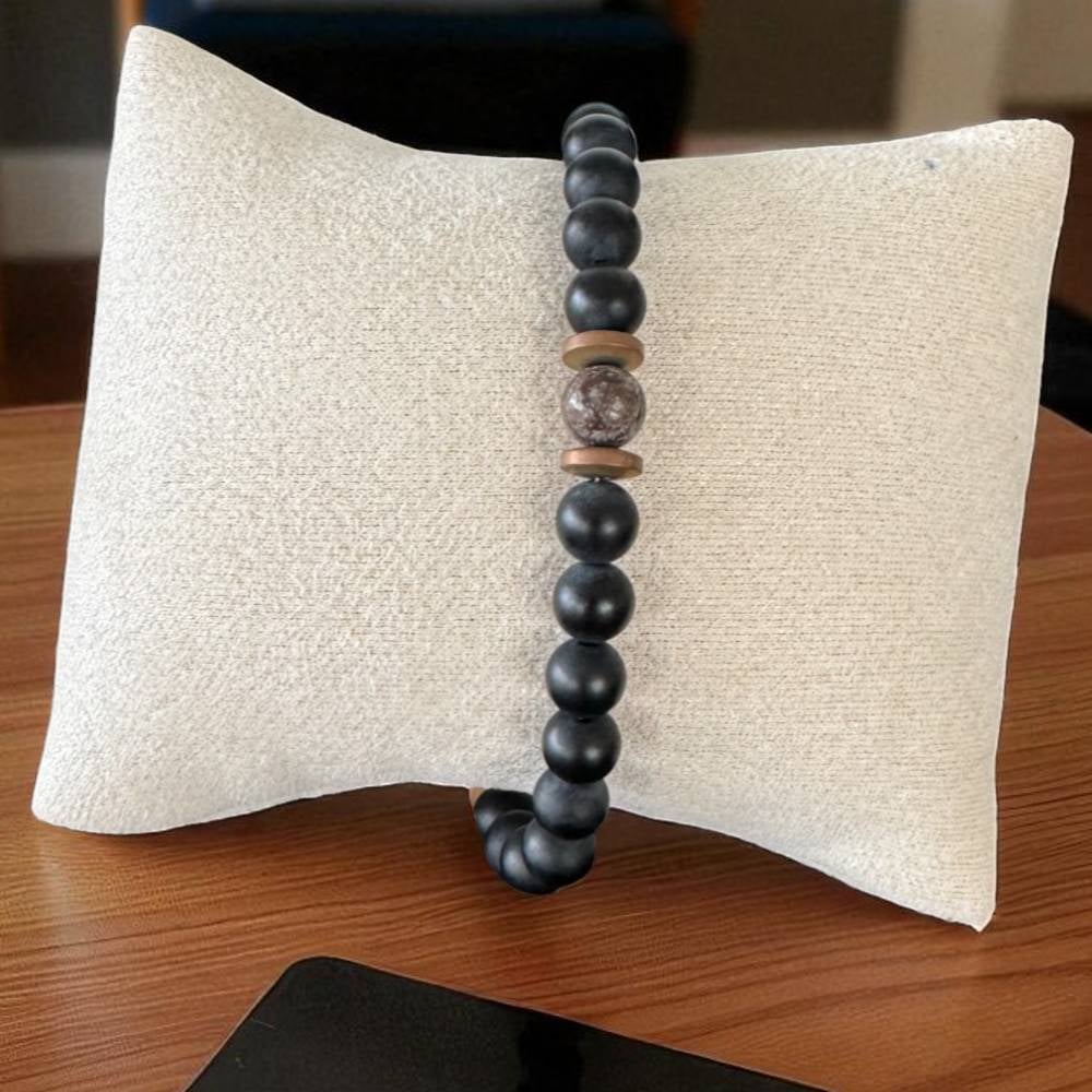 Descopera echilibrul perfect dintre forta si rafinament cu Bratara Soren, o creatie Ezera care redefineste bijuteriile masculine. Lucrata manual cu pasiune si atentie la fiecare detaliu, aceasta piesa unica combina energia protectoare a trei pietre de putere intr-un design sofisticat care vorbeste despre caracterul tau.