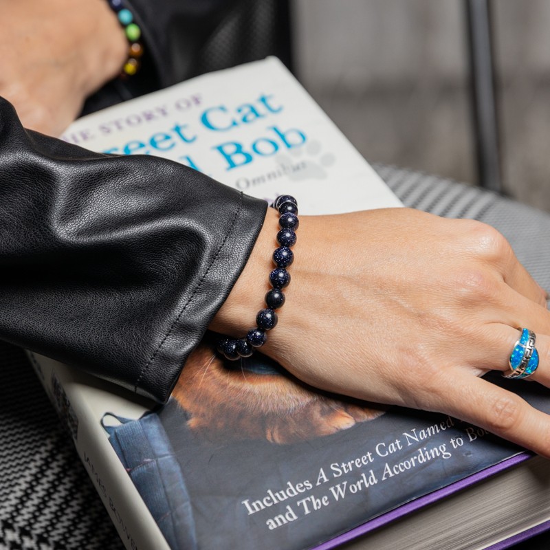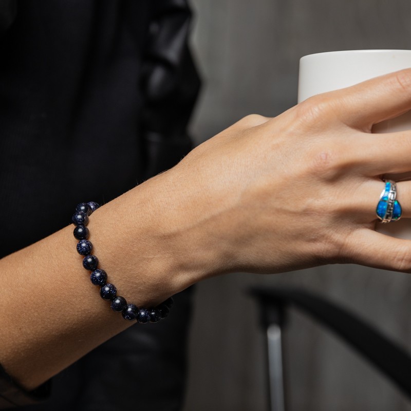 Bratara Dama Pietre Semipretioase Sintetice, Sand Stone Albastru, “Ela”, Margele de 8 mm