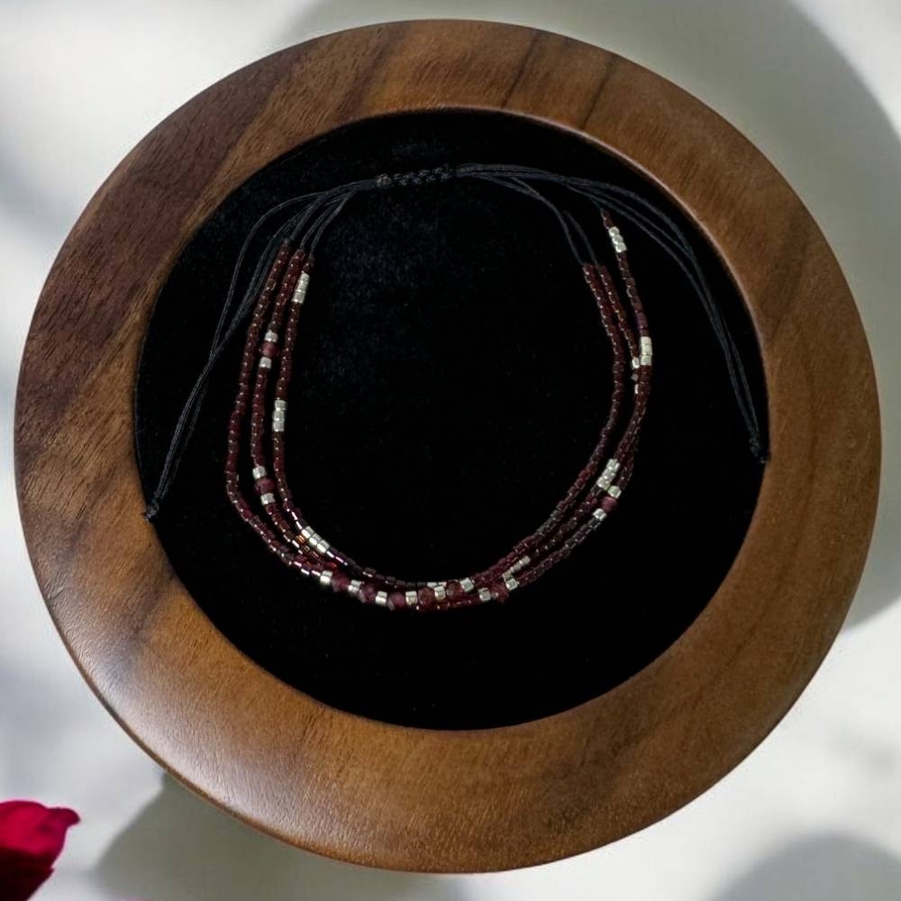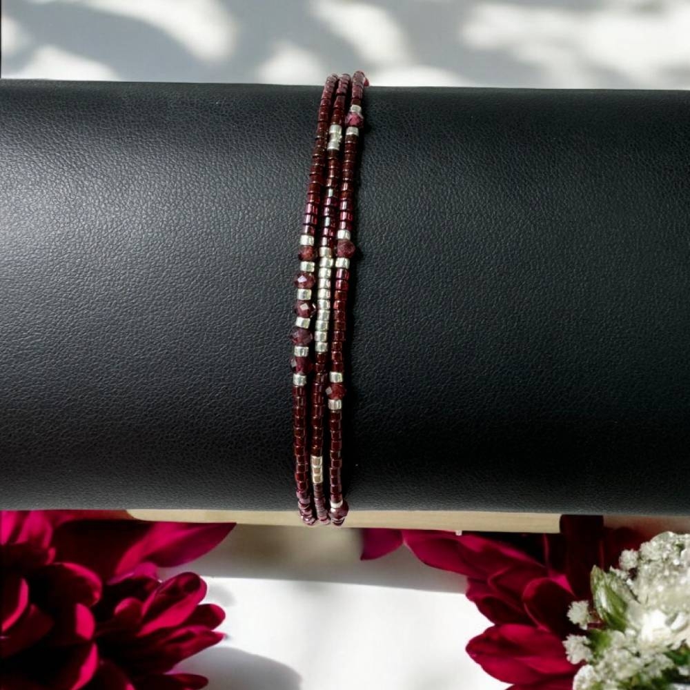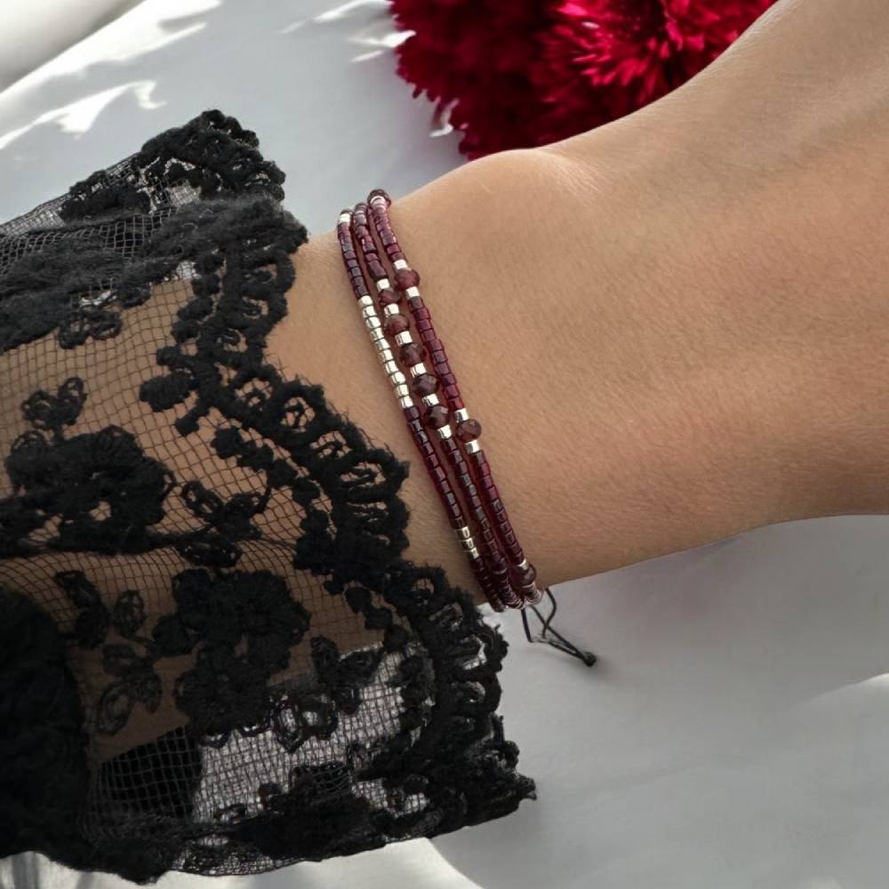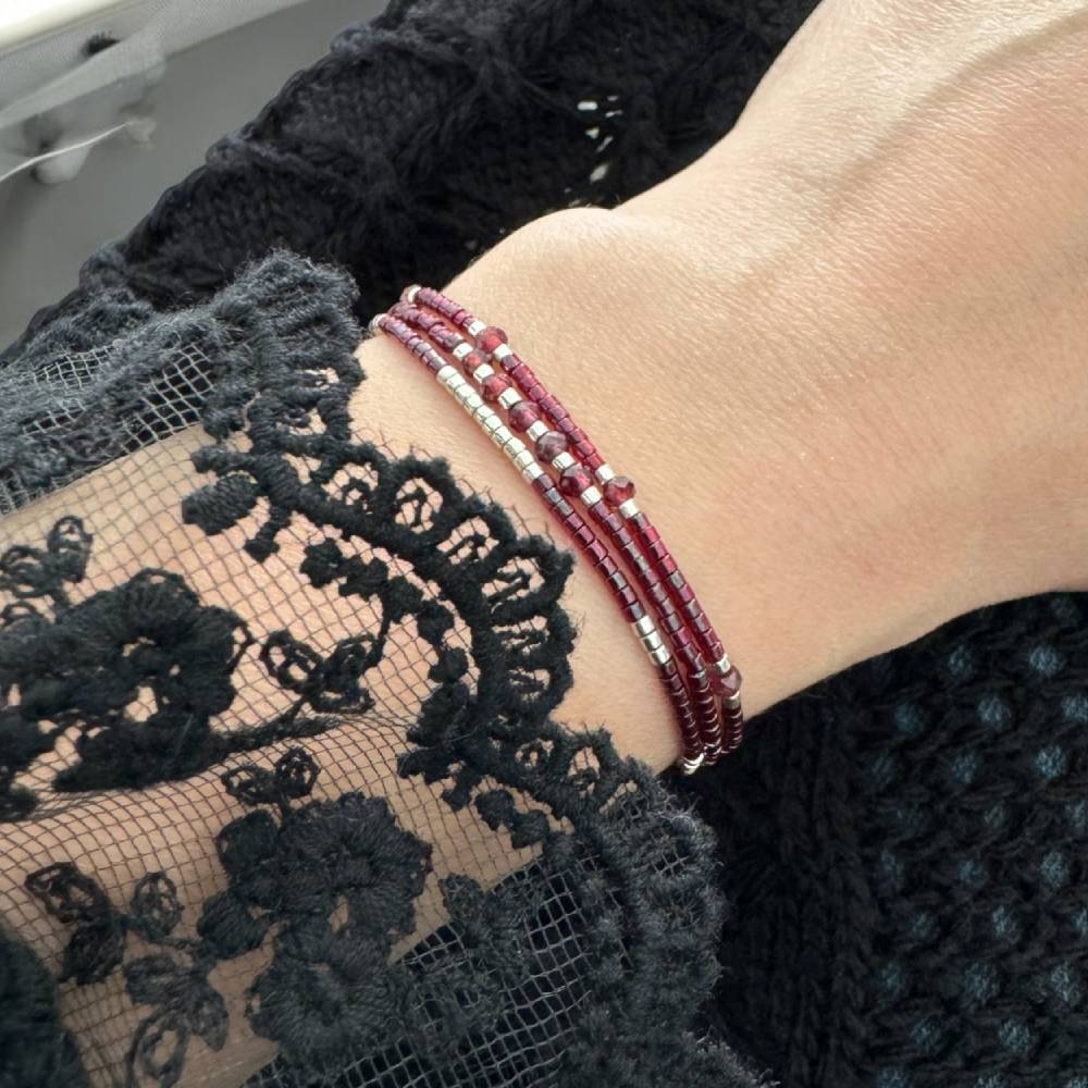 Bratara handmade snur Inaya 3 straturi Miyuki si cristale Granat