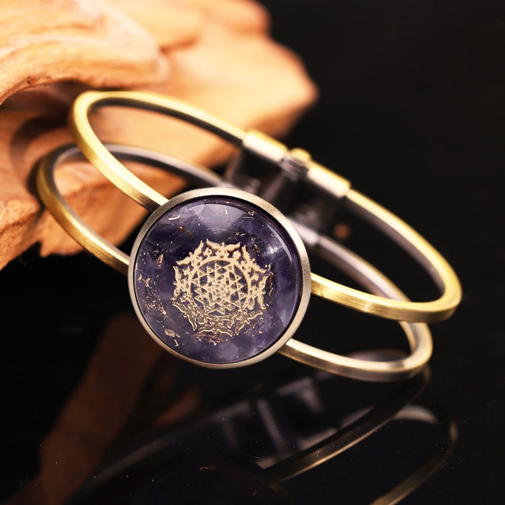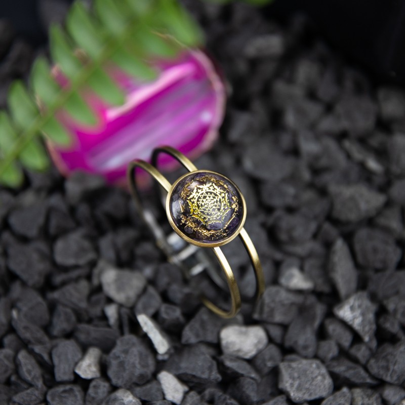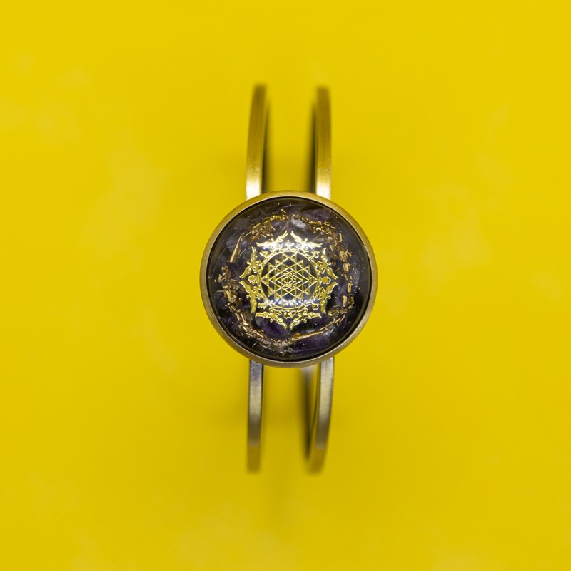 Daca sunteti in cautarea unei bratari deosebite, atunci bratara orgonica “ASHIA” este alegerea potrivita. Cristalele de Ametist incorporate in rasina alaturi de simbolul metalului "Sri Yantra" actioneaza ca filtru de energie. Energia dezechilibrata, este absorbita in orgonit, de amestecul metal-rasina si este readusa la o stare sanatoasa si vibranta de cristalul incorporat.