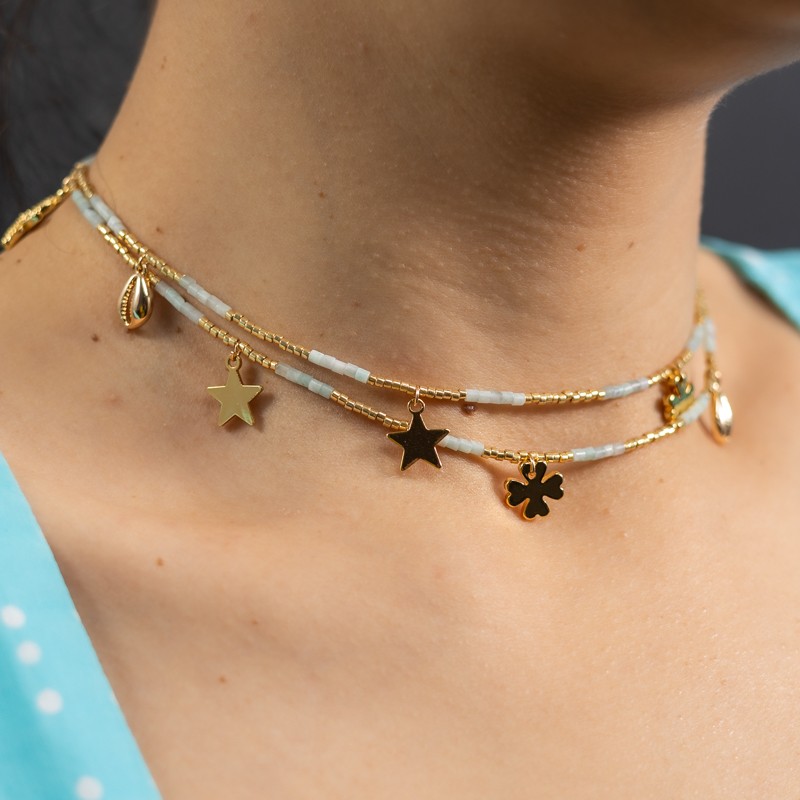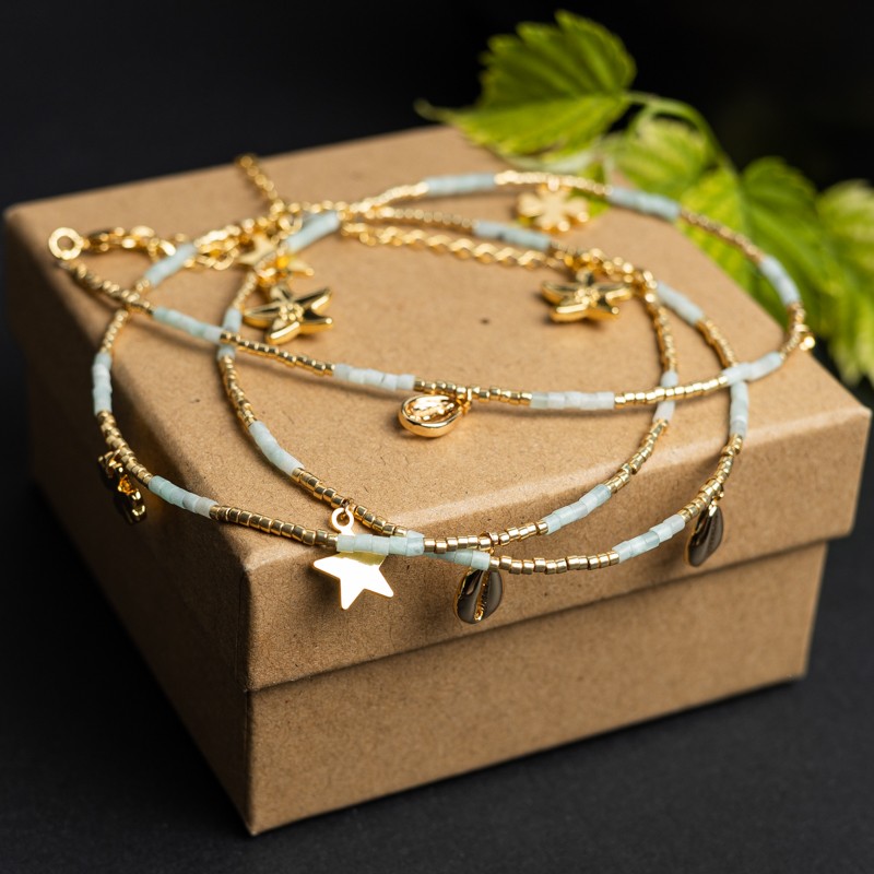 Pietre semipretioase: Placat cu aur de 18K, Acvamarin