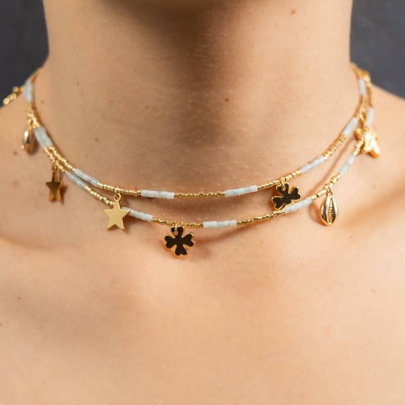Lanțul este versatil, poate fi purtat atat in talie cat si la gat.