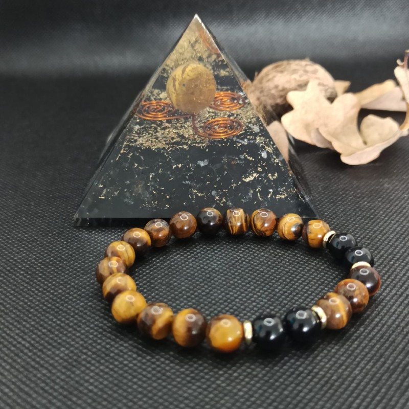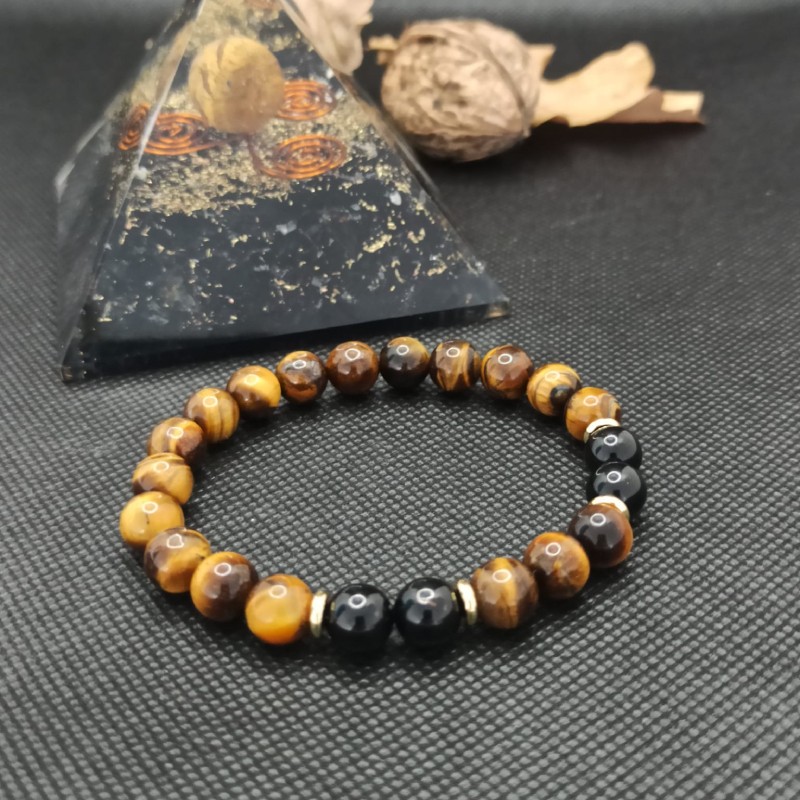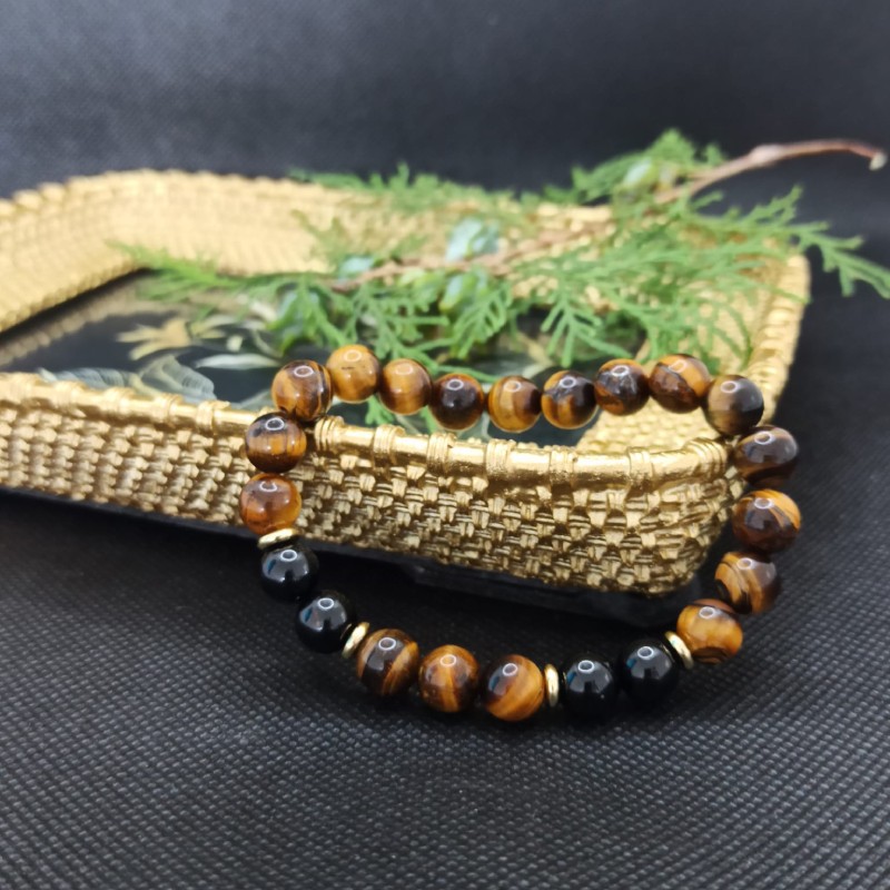 Alege sa porti bratara cu Ochi de Tigru si Turmalina Neagra, Tanvir. Bratara este un accesoriu elegant, care, prin cristalele din care este conceputa, protejeaza bunurile si banii proprietarului sau.