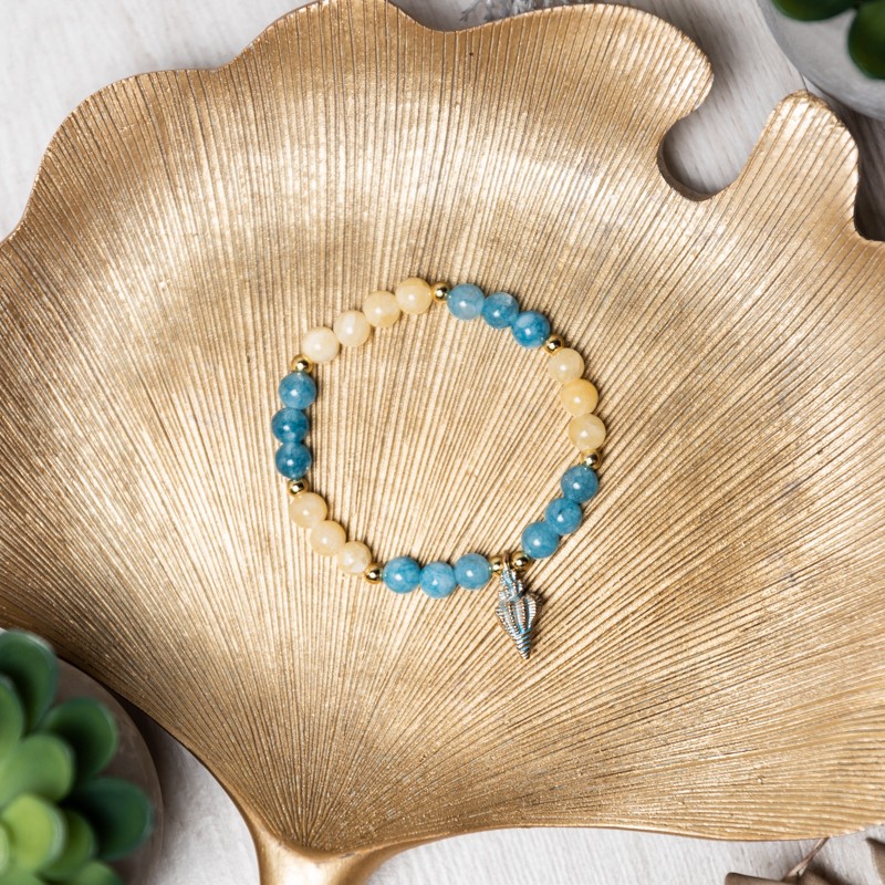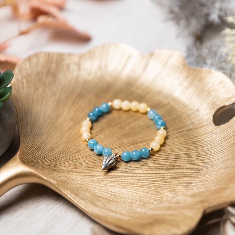 Bratara fete din cristale de Jad si charm scoica, Hirani, margele de 6mm