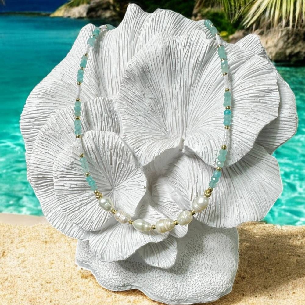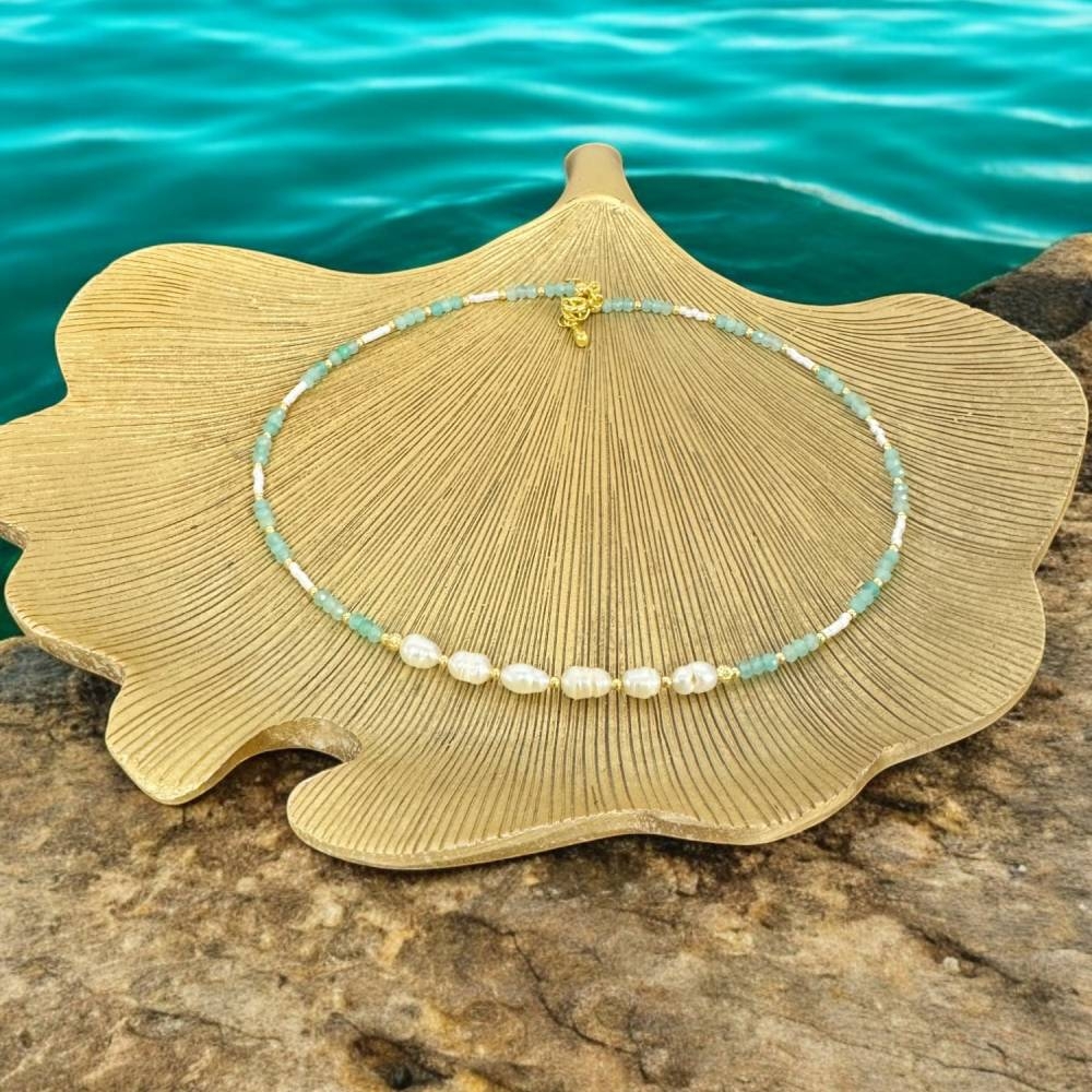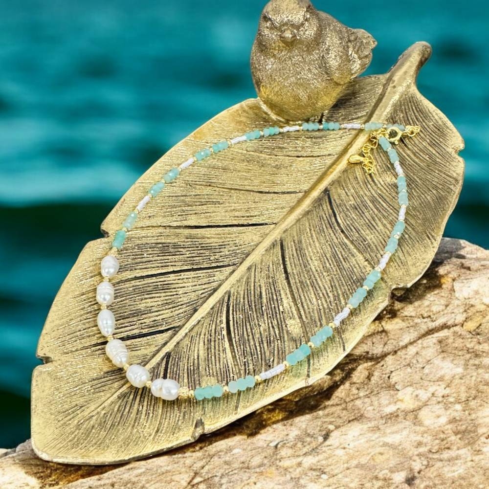 Colierul din pietre naturale de amazonit, perle naturale si Miyuki este un cadou minunat pentru orice ocazie speciala. Fie ca este vorba de o zi de nastere, o aniversare sau o zi obisnuita in care vrei sa te simti speciala, acest colier este alegerea ideala.