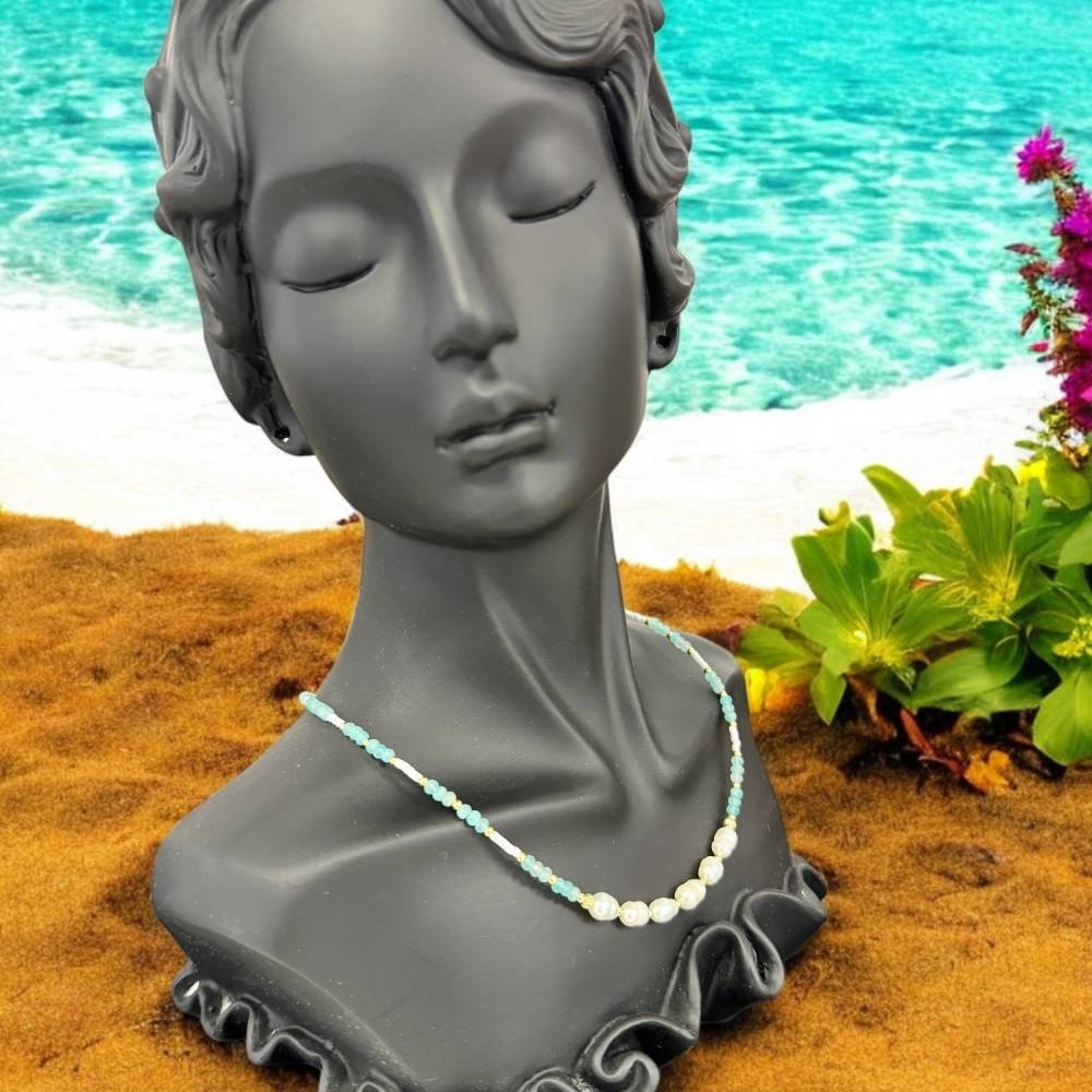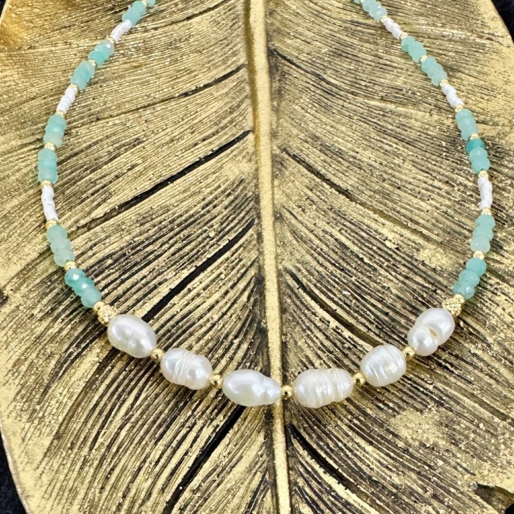 Colierul din amazonit cu perle naturale si margelute Miyuki de un alb sidefat este un accesoriu elegant si fin, perfect pentru femeile moderne care apreciaza frumusetea subtila a pietrelor naturale. Cu un design delicat si un finisaj deosebit, acest colier adauga o nota de rafinament oricarei tinute, fiind usor de asortat atat la outfituri de zi, cat si la cele de seara. Ideal pentru a completa garderoba unei femei care cauta un accesoriu deosebit si de calitate.