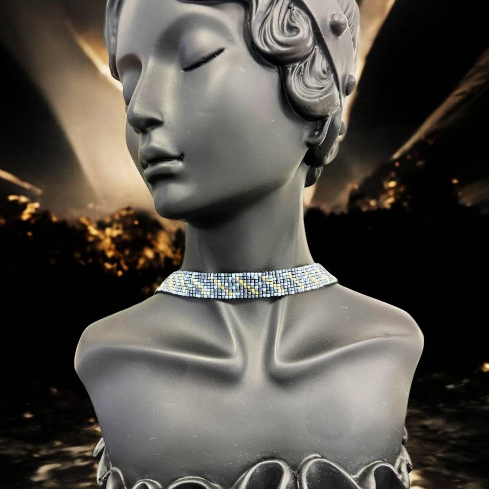 Am creat pentru tine colierul choker Ansel, un accesoriu rafinat si deosebit. Realizat manual din margele Miyuki, cunoscute pentru precizia si calitatea lor, acest colier imbina traditia cu un design modern, oferind un aspect luxos si versatil. Fiecare detaliu este atent lucrat pentru a crea un accesoriu care sa capteze atentia si sa puna in valoare orice moment special.
