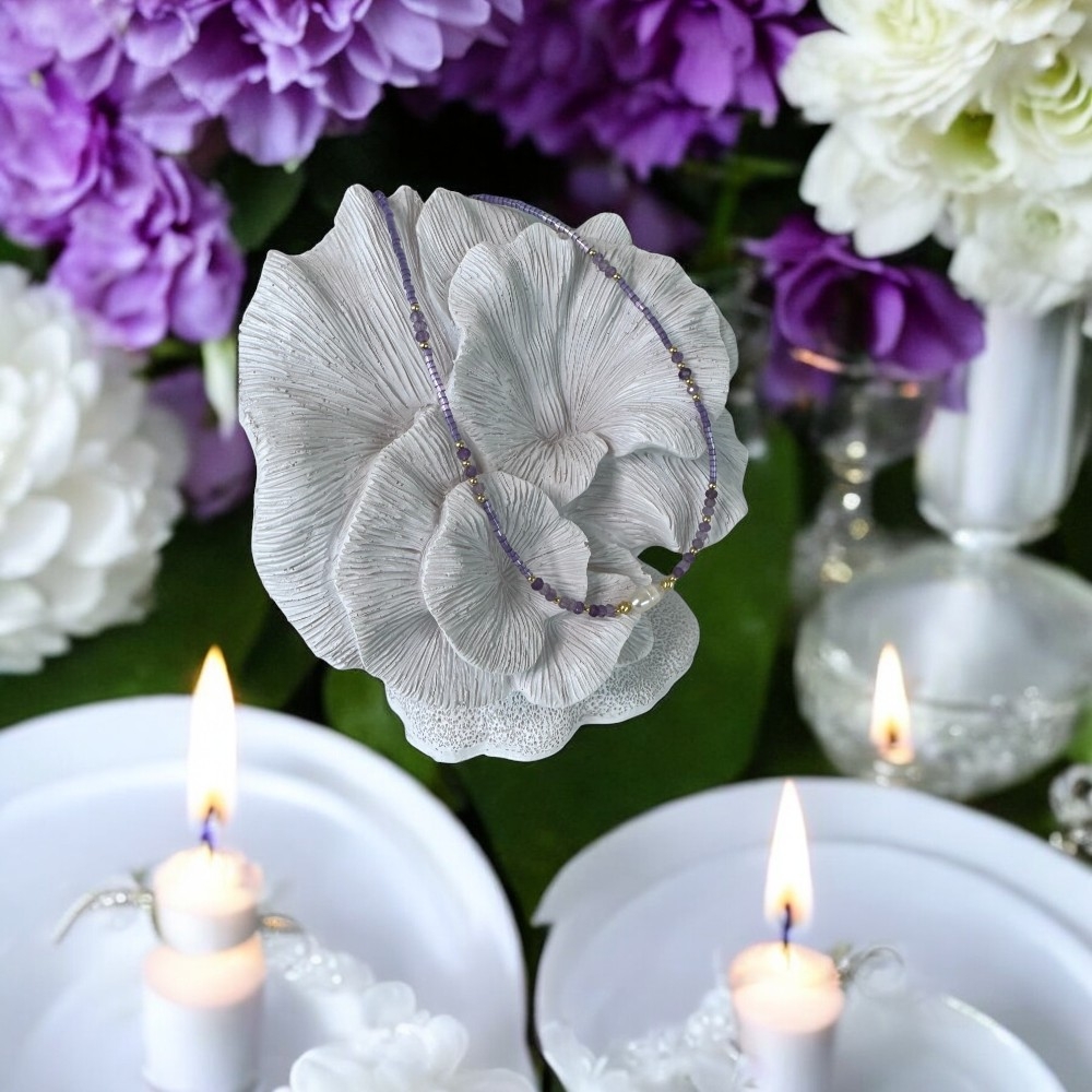 Ametistul este cunoscut nu doar pentru frumusetea sa, dar si pentru proprietatile sale benefice. Se spune ca Ametistul are puterea de a aduce echilibru emotional si de a promova linistea interioara. Aceasta piatra semipretioasa este considerata un simbol al protectiei si al claritatii mentale, fiind ideala pentru a-ti calma gandurile si a te ajuta sa te concentrezi. Colierul cu Ametist poate deveni astfel un accesoriu nu doar estetic, ci si terapeutic.
