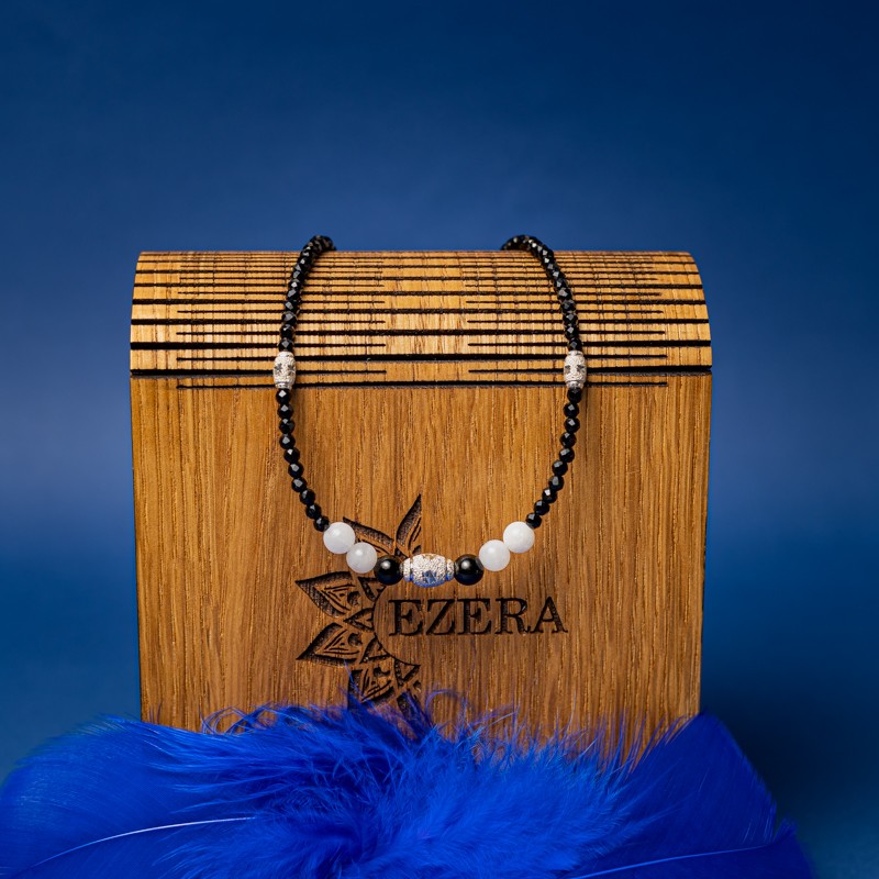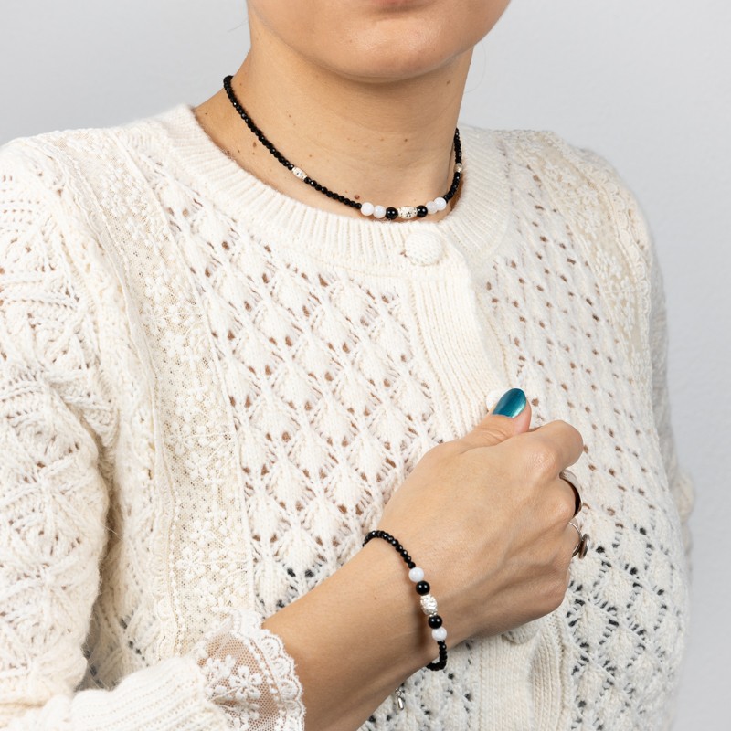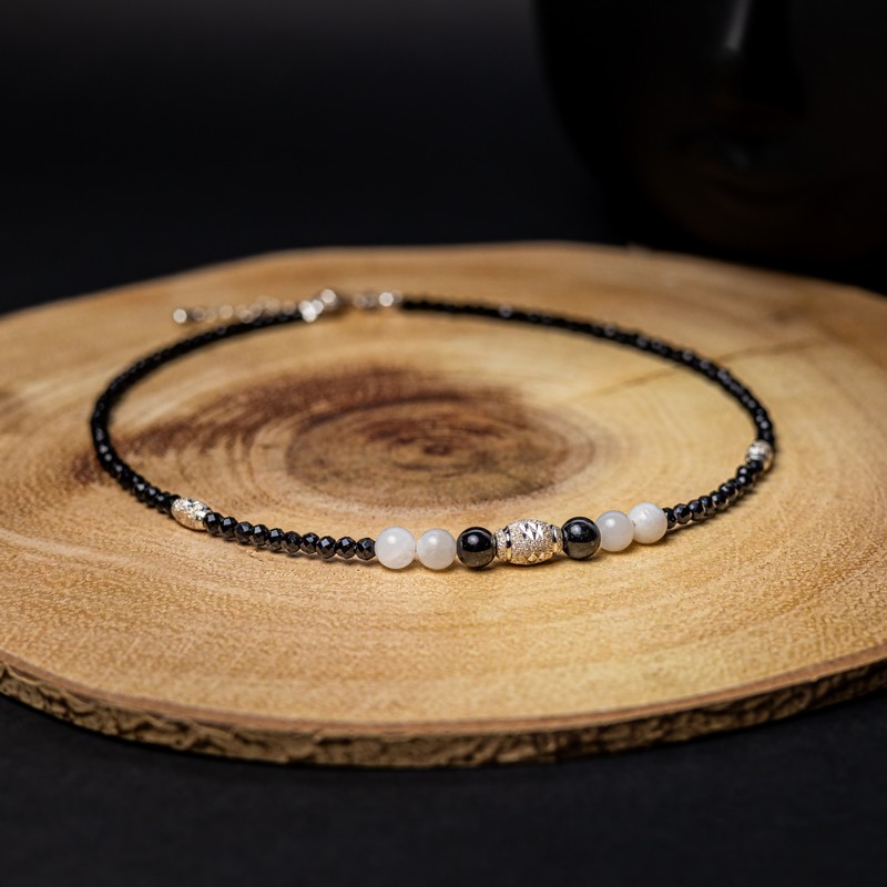 Lasa-te atrasa de colierul Shrey din cristale naturale de spinel negru. Micile margele fatetate vor straluci minunat la gatul tau, accesorizand-ti tinuta indiferent de ocazie.