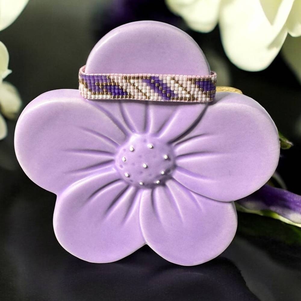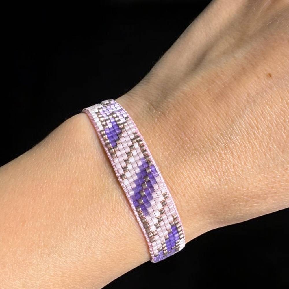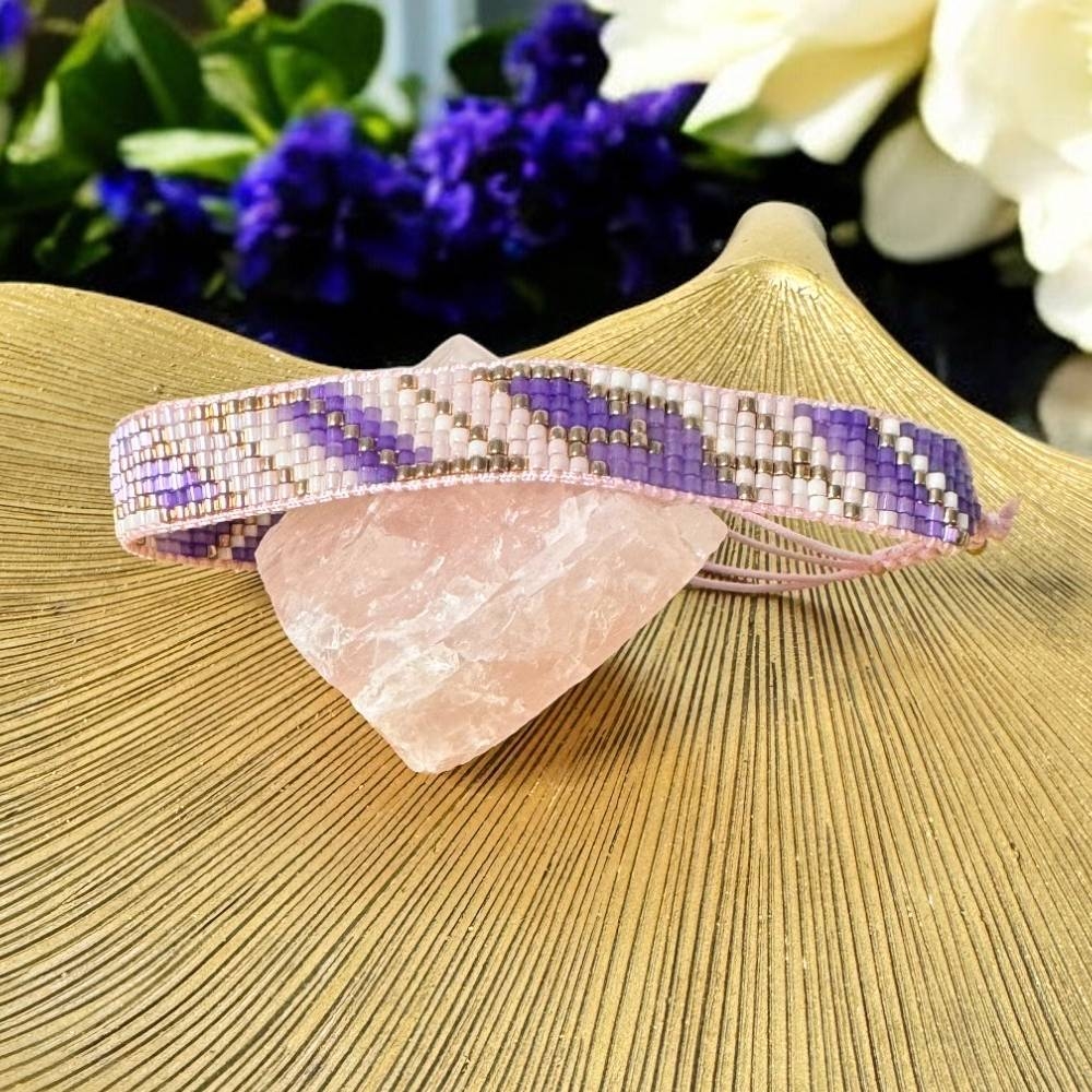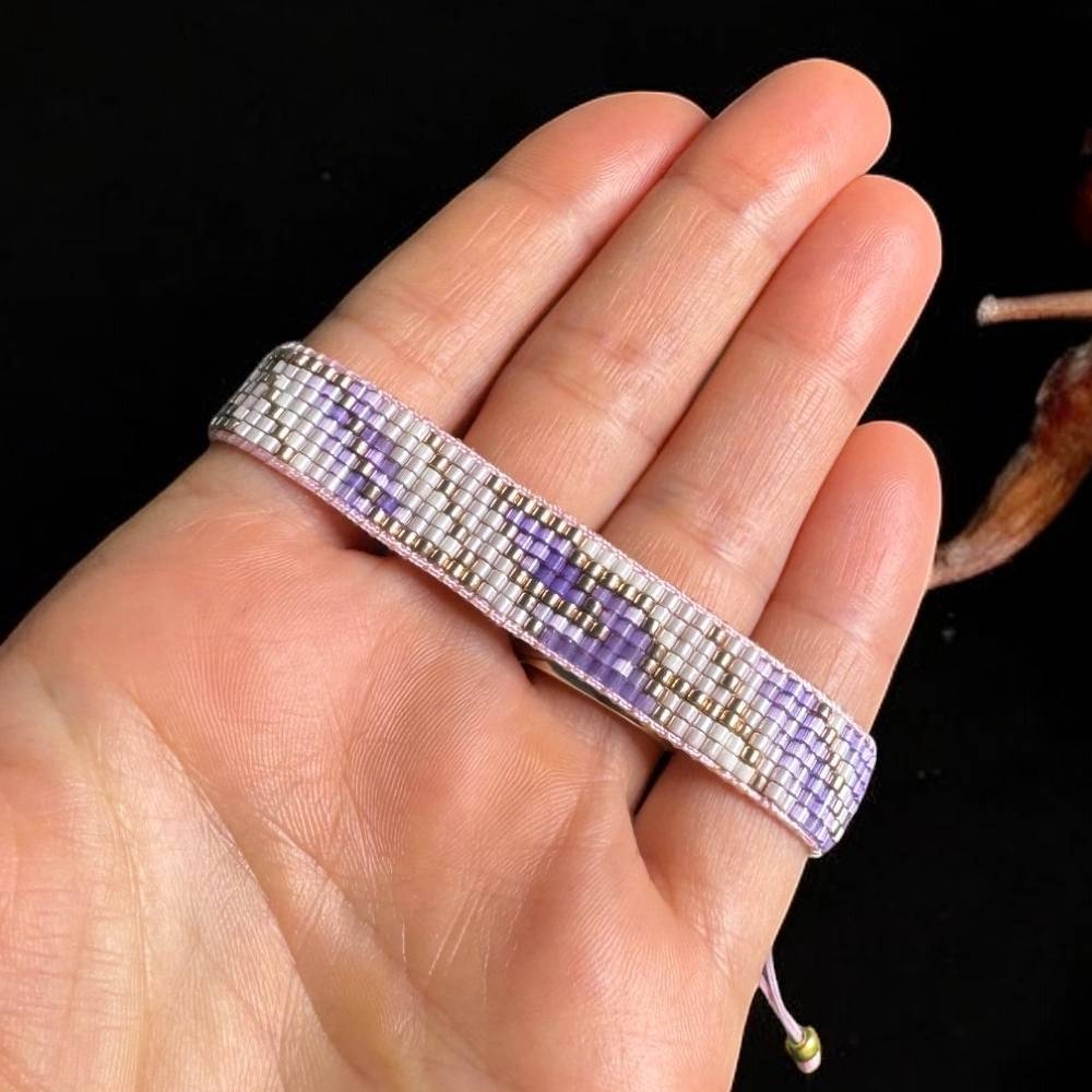 Bratara snur pentru femei Nour, realizata manual din margele Miyuki in nuante de mov si roz pal, este alegerea perfecta pentru un look rafinat si modern. Fiecare margea este atent aleasa si impletita cu maiestrie pentru a crea un accesoriu unic, deosebit.