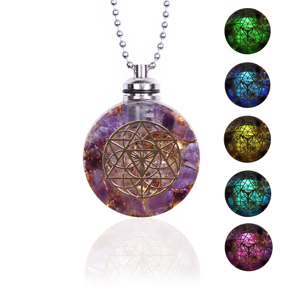 Andor, un minunat colier cu pandantiv din cristal de piatra naturala de Ametist, cu lumina LED. Cand rasucesti comutatorul de pe pandantiv, acesta emite lumina colorata. Poarta-l in intuneric si vei lumina :)