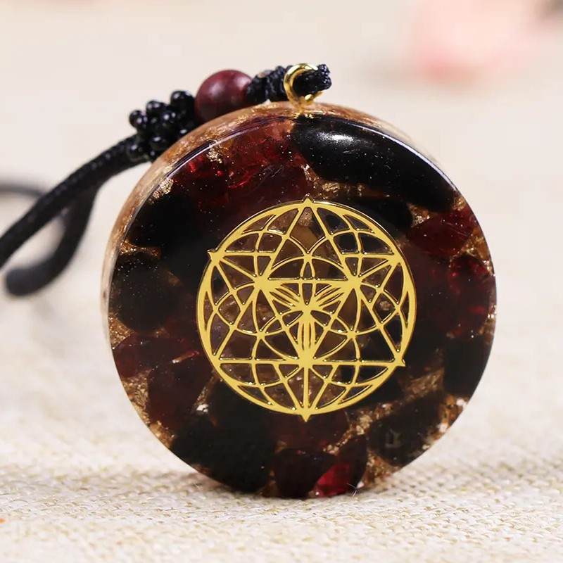 Acest pandantiv nu este doar o bijuterie, este un vas al transformarii si cresterii. Te incurajeaza sa-ti imbratisezi calatoria de auto-descoperire, sa te scufunzi in profunzimile emotiilor tale si sa iesi la suprafata cu intelepciunea si puterea nou-gasita. Fie ca treci prin provocarile vietii de zi cu zi sau cauti o conexiune mai profunda cu Universul, acest pandantiv orgonit cu Granat, Obsidian si Samanta Vietii este insotitorul tau ferm.