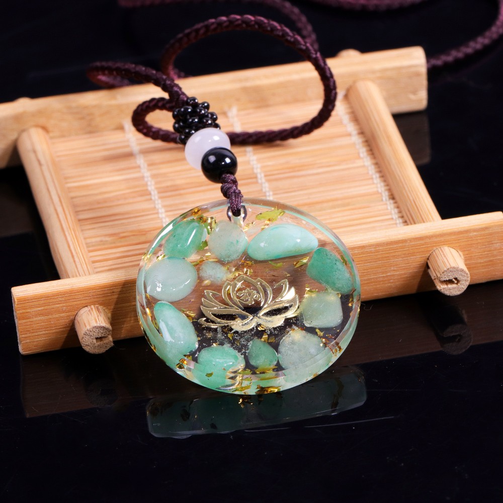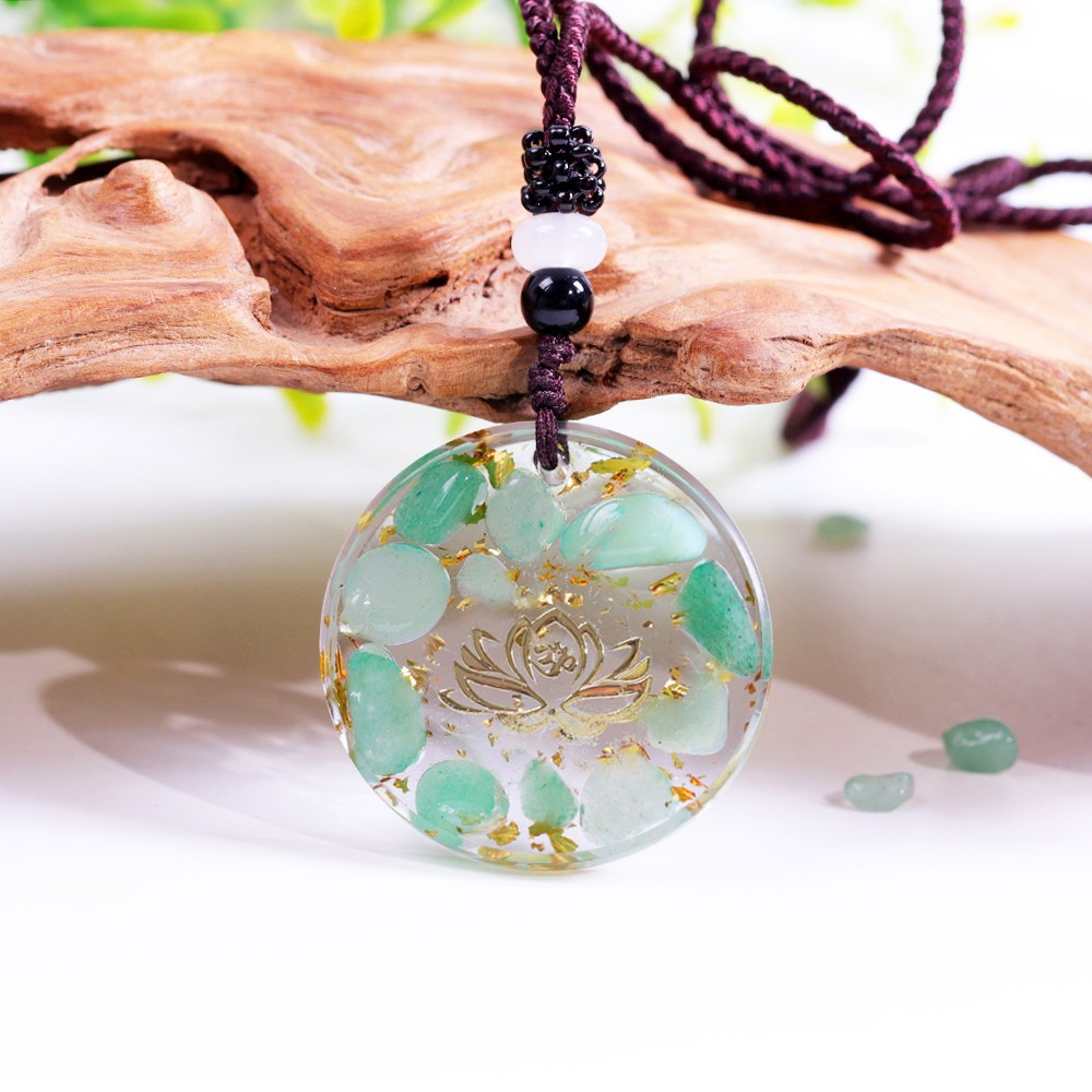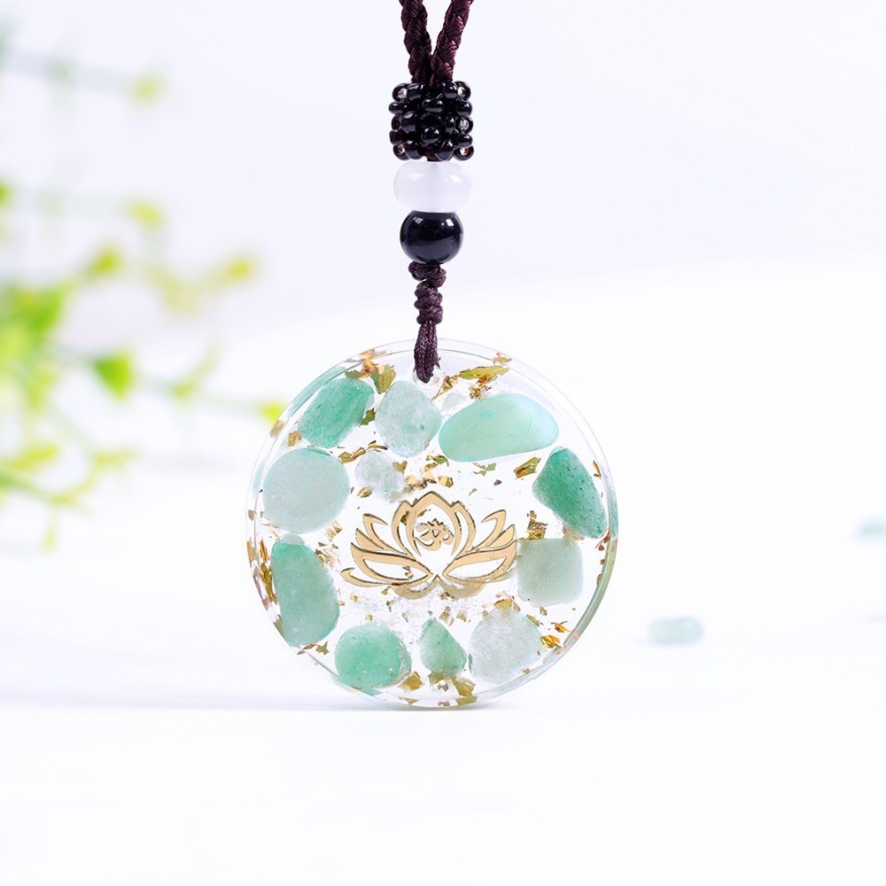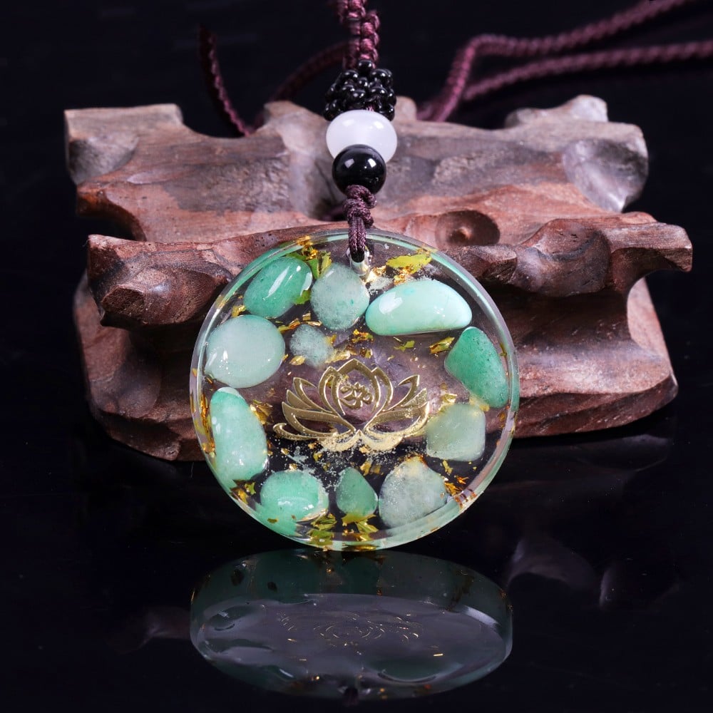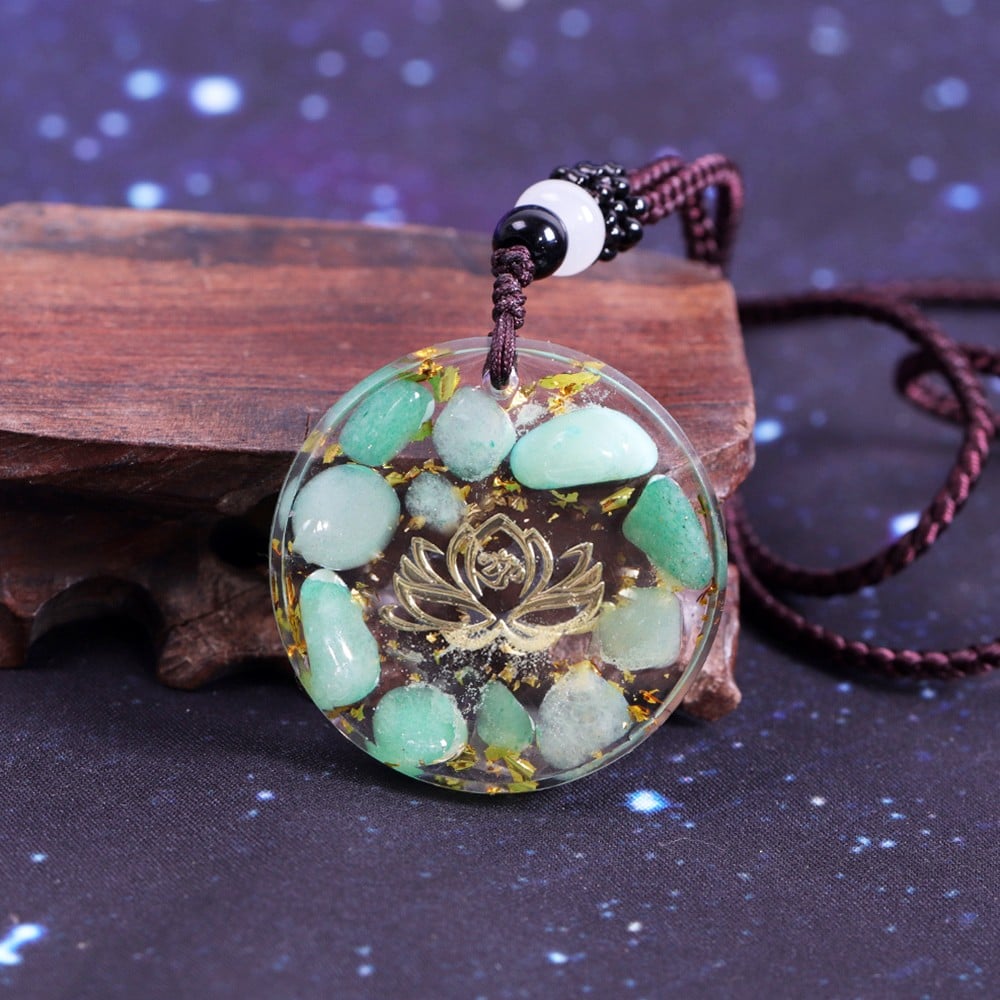 Pandantiv orgonit Kaia cu pietre semipretioase de Amazonit si simbol lotus