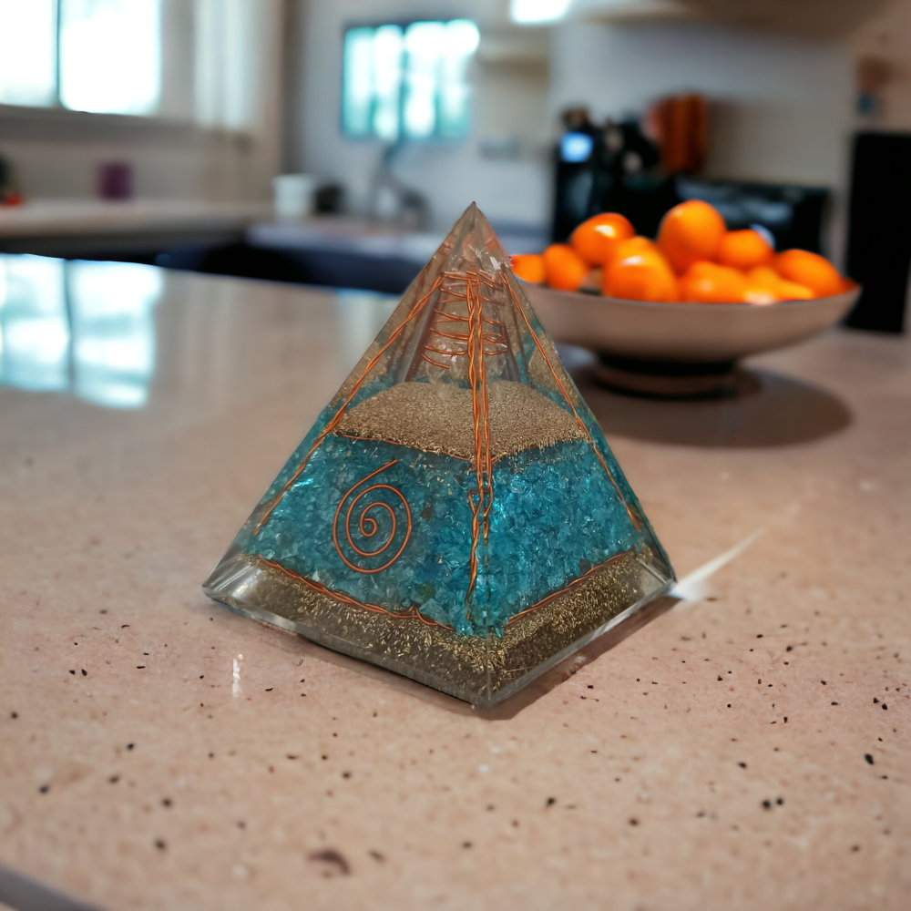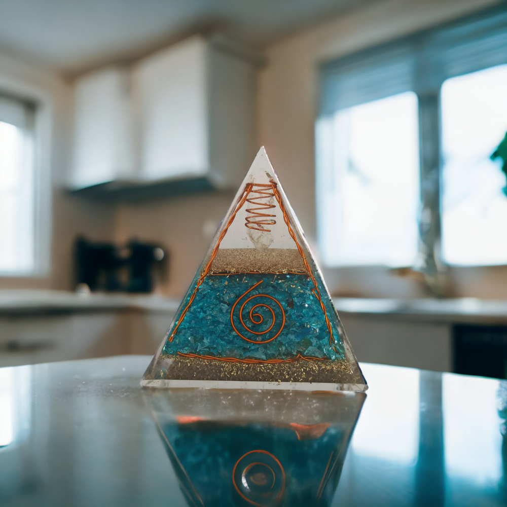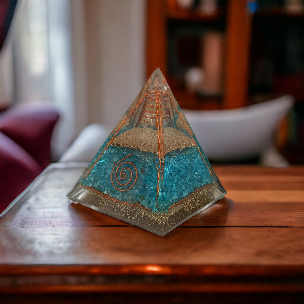 Aceste piramide Orgon sunt realizate dintr-un amestec de pietre semipretioase, pilitura de metal, spirale de cupru si rasina epoxidica, rezultand un instrument extrem de eficient de transmutare a energiei. Energia negativa este absorbita si transmutata in energie pozitiva in timp ce emana energia unei intentii stabilite.