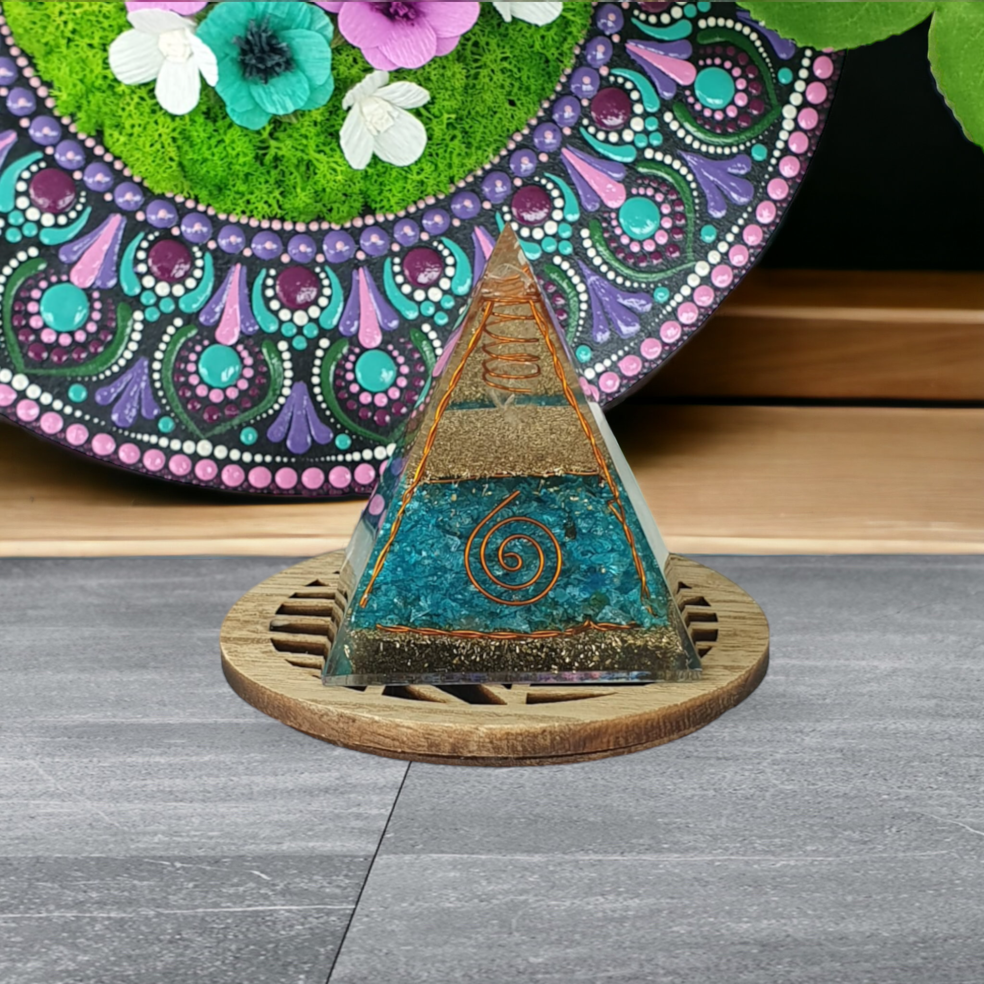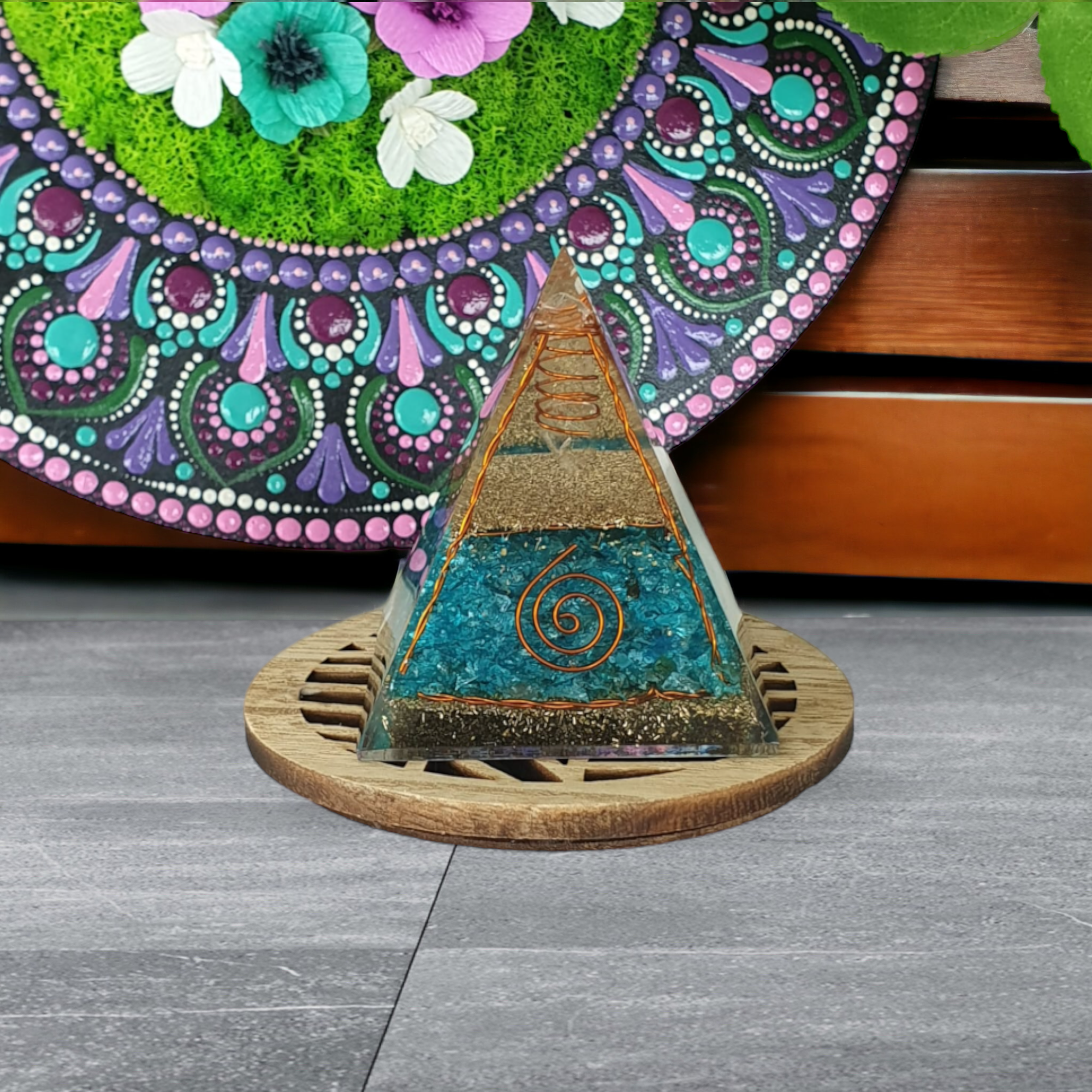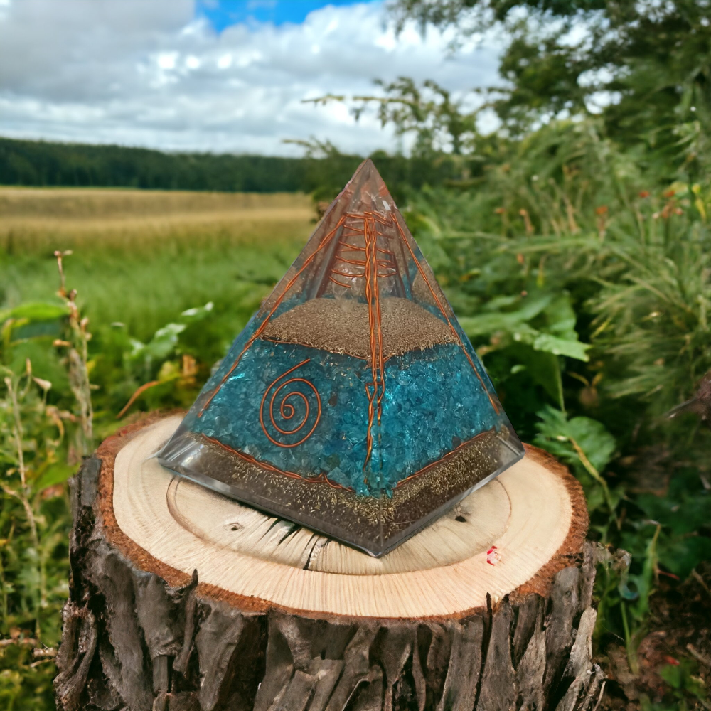 Aceste piramide Orgon sunt realizate dintr-un amestec de pietre semipretioase, pilitura de metal, spirale de cupru si rasina epoxidica, rezultand un instrument extrem de eficient de transmutare a energiei. Energia negativa este absorbita si transmutata in energie pozitiva in timp ce emana energia unei intentii stabilite.