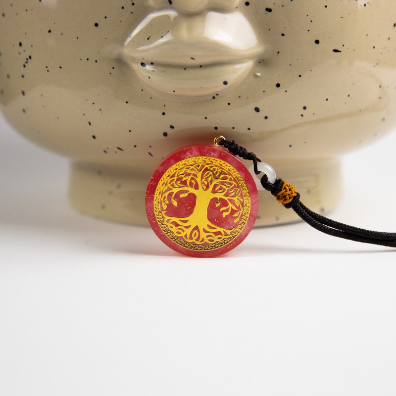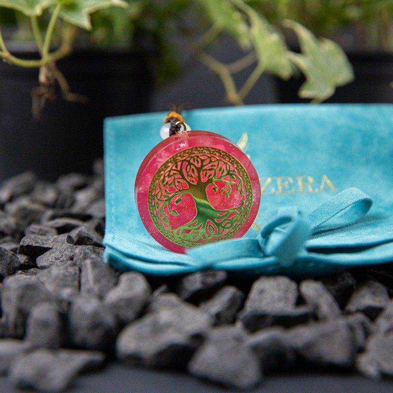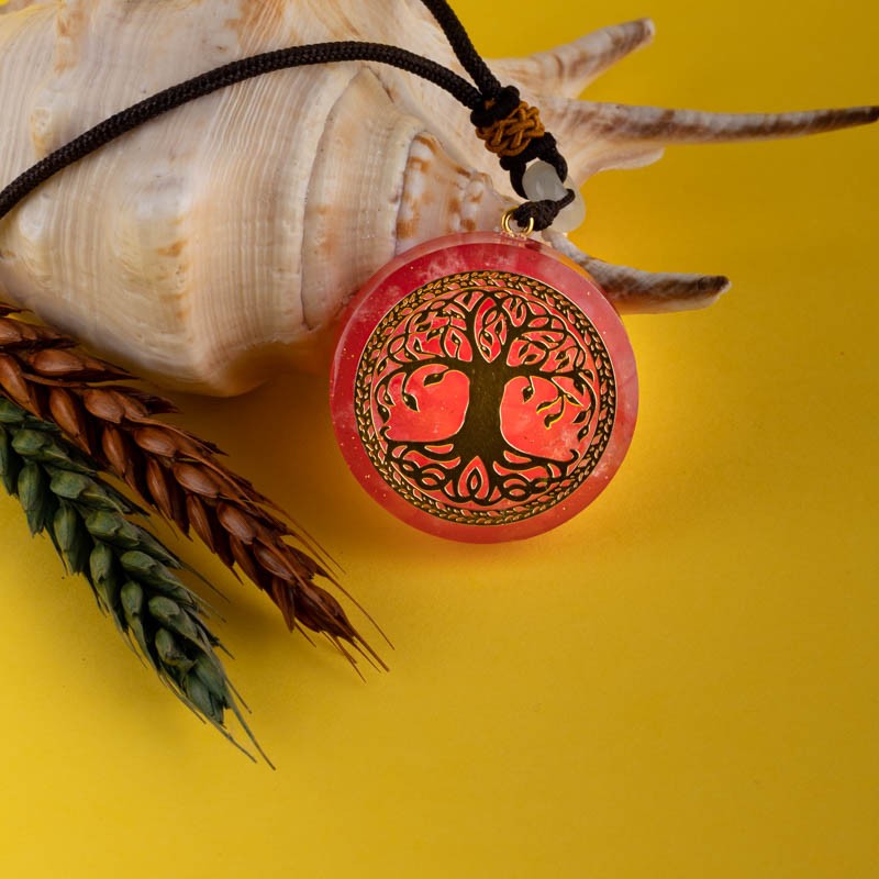 Pandantivul “AGNI” este o bijuterie deosebita si totodata un dispozitiv orgonic care actioneaza ca filtru de energie prin turnarea simbolului din metal “Copacul Vietii” si a cristalelor de cuart roz in rasina.
