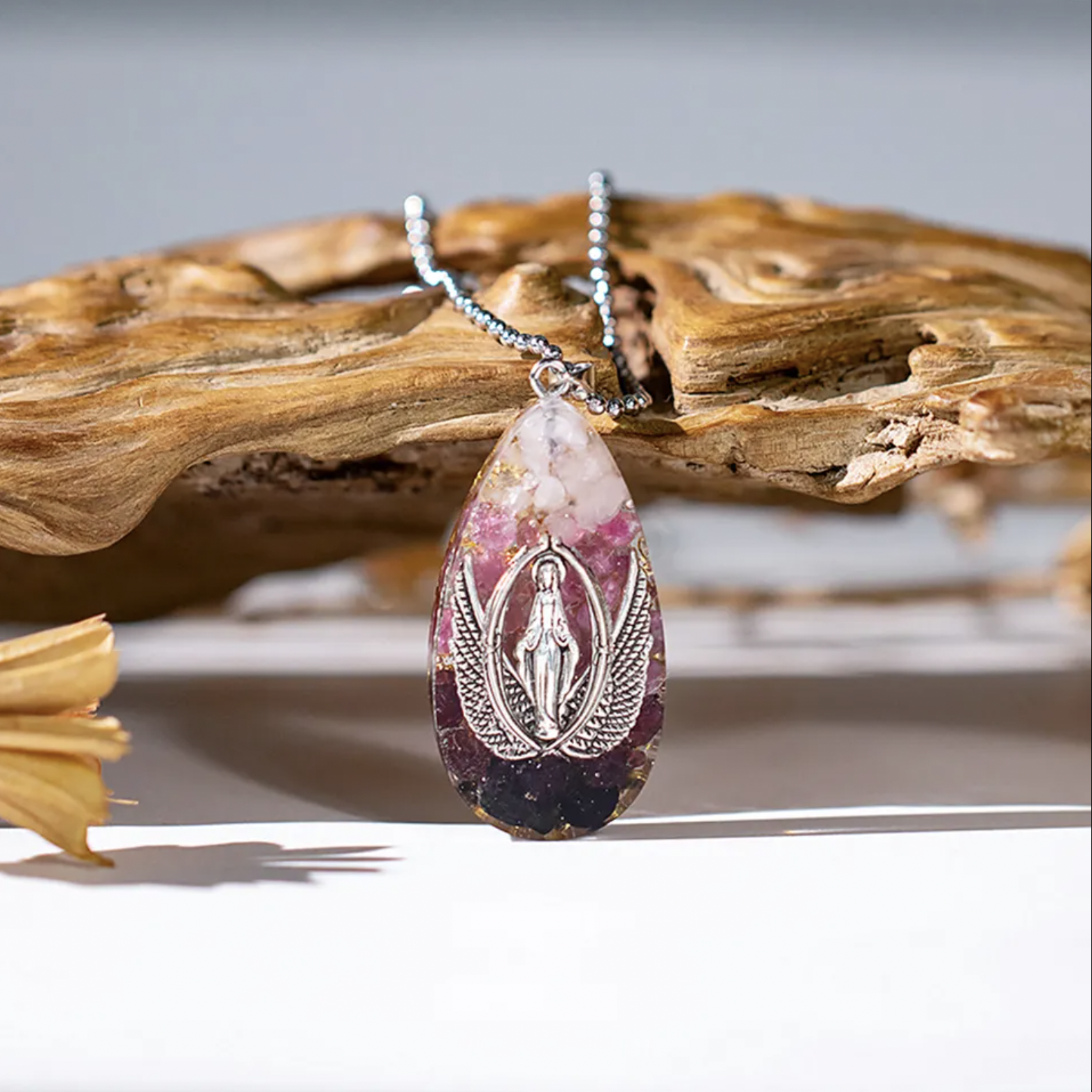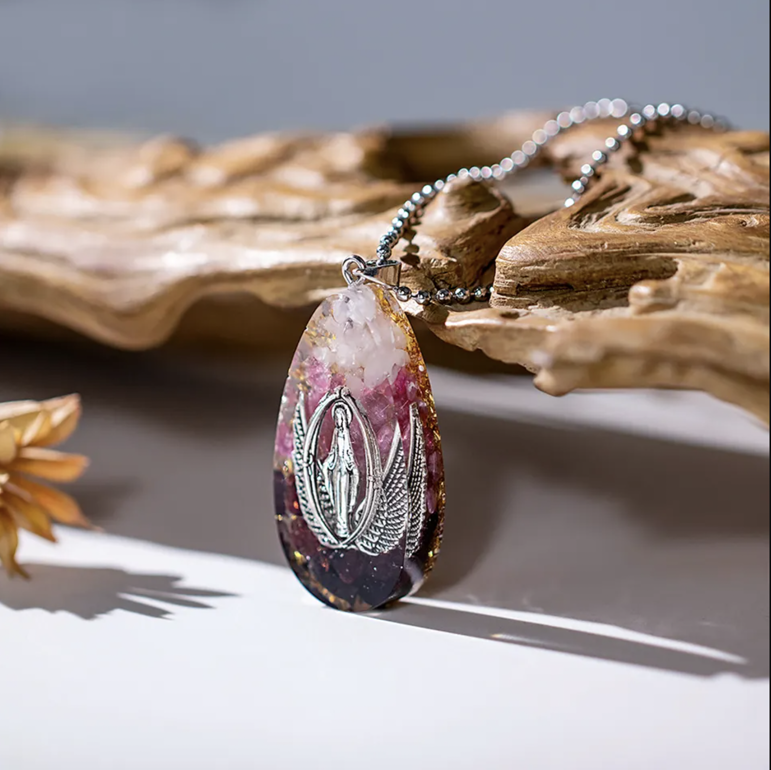 Acest pandantiv nu este doar o bijuterie, este un orgonit, o compozitie dinamica de rasina, metale si cristale care genereaza energie pozitiva si curata, purificand energia din mediul inconjurator. Cu fiecare miscare gratioasa a acestui colier, vei simti schimbarile subtile din campul tau energetic, apropiindu-te de o stare de pace interioara si echilibru.