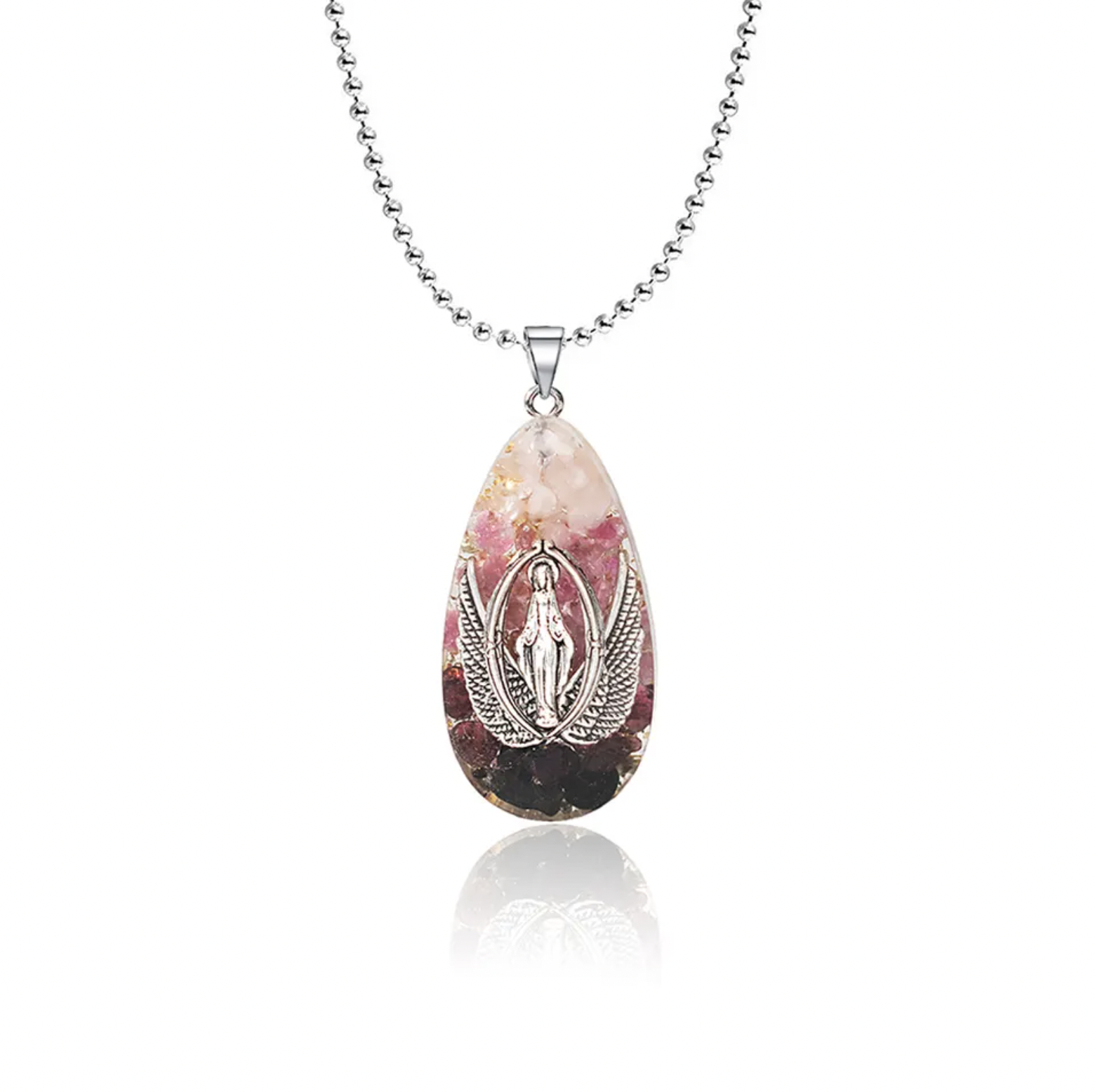 Pandantivul este o creatie unica in care aripile eterice de inger leagana cu tandrete simbolul iconic al Maicii Domnului. Este o marturie a aspectelor nutritive si protectoare ale divinului, o reamintire ca esti vesnic supravegheat si ghidat de o prezenta iubitoare. Pe masura ce porti acest colier, vei simti imbratisarea blanda a fortelor ceresti, oferindu-ti un sentiment de confort si conexiune spirituala.
