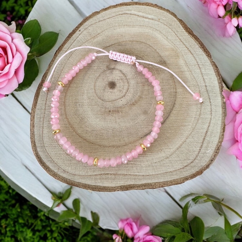 Bratara dama Olivia snur din cristale de Jad Roz Fatetat cu accesorii din argint placat cu aur 925