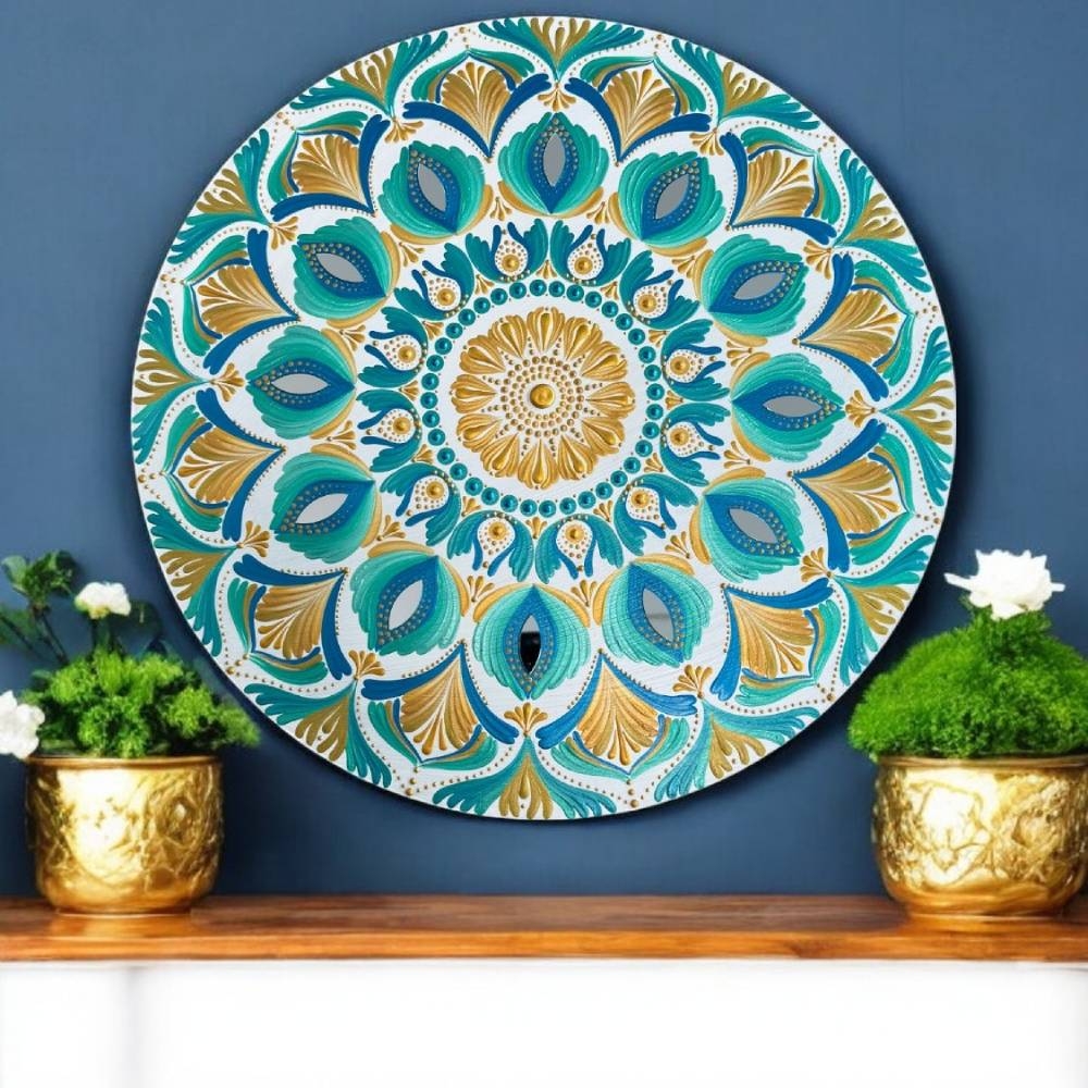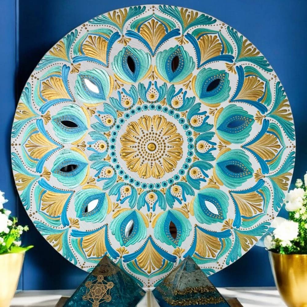 Prin acest tablou mandala, aduc in fata ta o piesa care nu doar ca infrumuseteaza spatiul, dar te invita si la o calatorie interioara, o explorare a energiilor pozitive ale verii. Auriul si turcoazul, culorile soarelui si apei, se imbina perfect pentru a crea o atmosfera plina de vitalitate si optimism. Alege sa ai acest tablou unicat si lasa-l sa iti inspire fiecare zi!