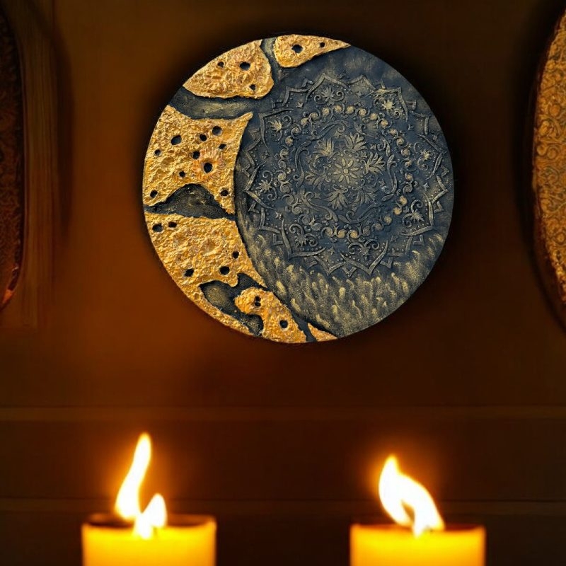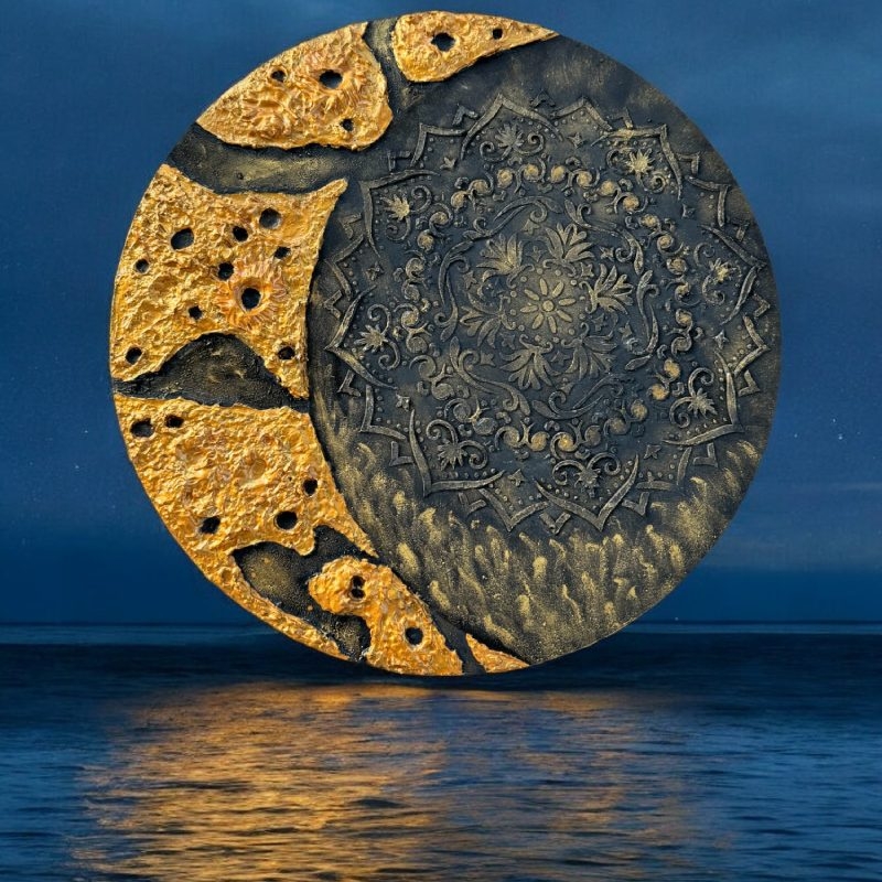 Te invit sa descoperi un tablou ce combina magia Lunii stralucitoare cu simetria perfecta a Mandalei.