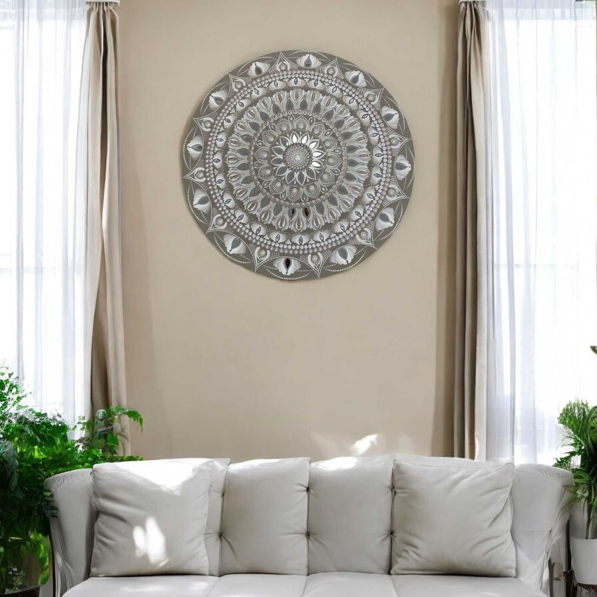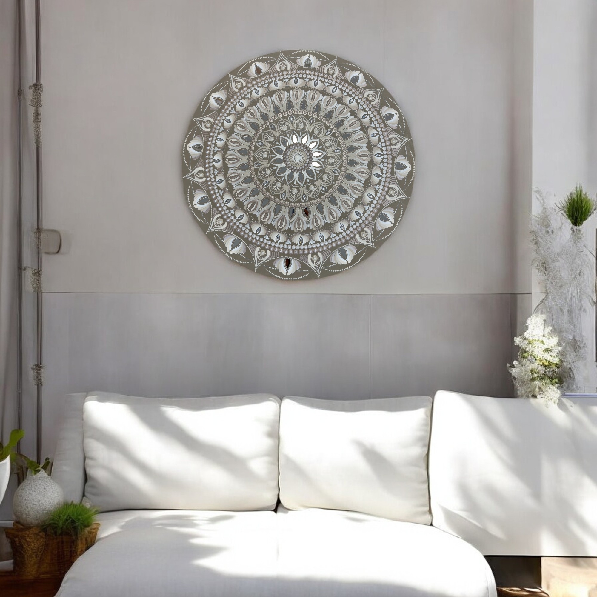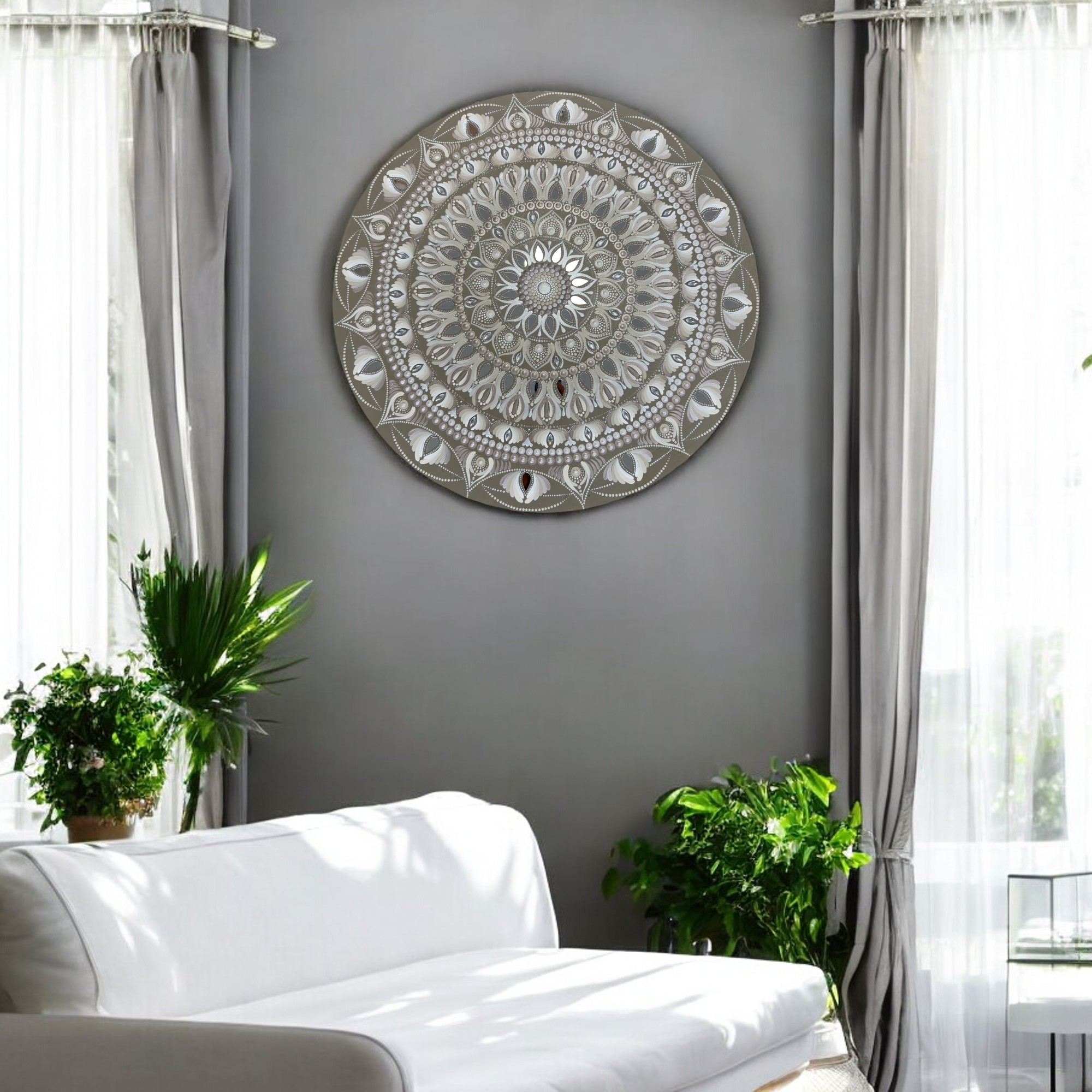 Am pictat acest tablou cu drag si bucurie ca sa aduc in spatiul tau un sentiment de armonie si inspiratie. Noua Mandala emana o eleganta discreta in tonuri de bej, alb si gri. Paleta moale de tonuri neutre sporeste energia linistitoare a Mandalei.