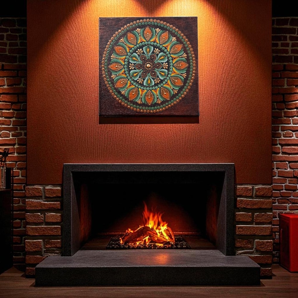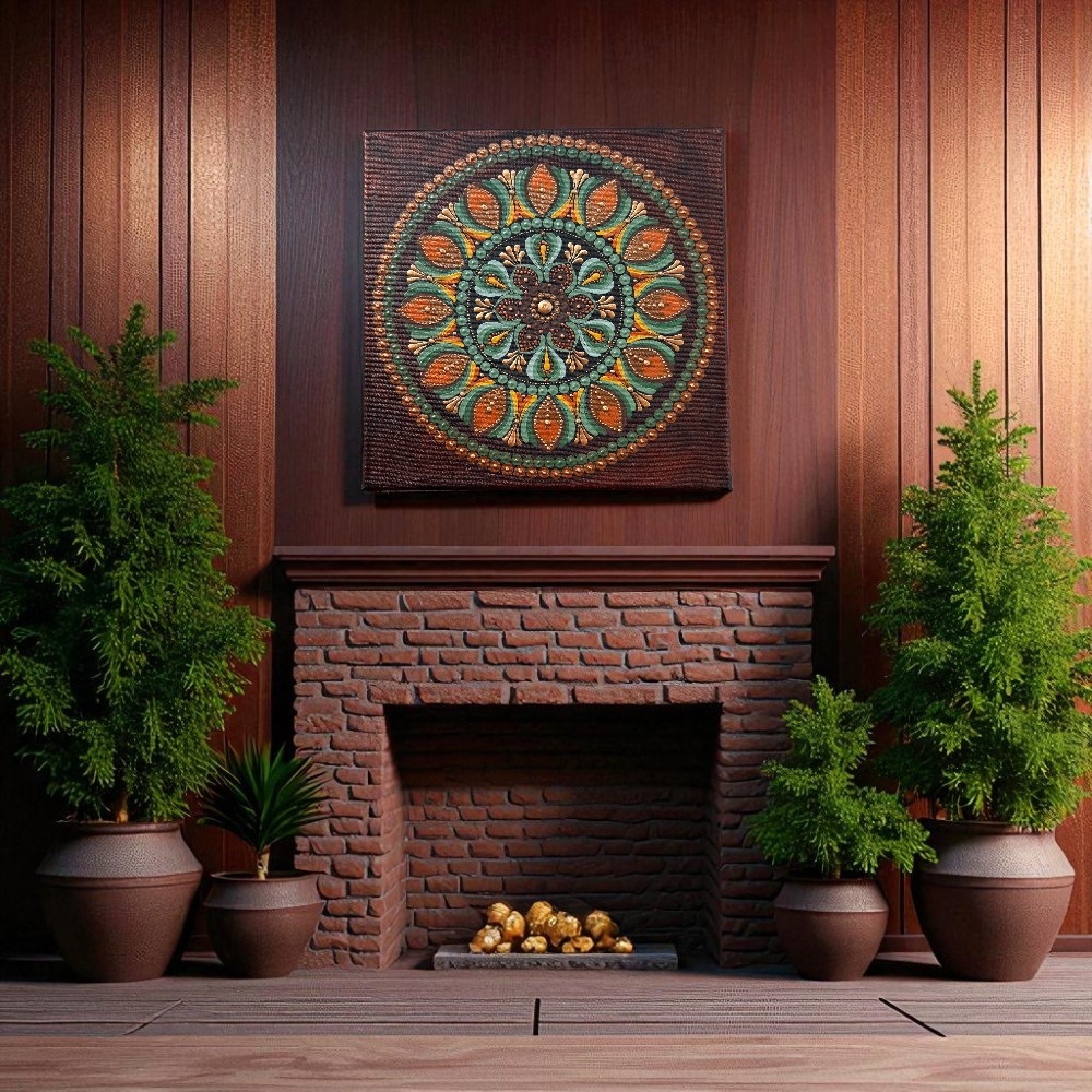 In aceasta interpretare artistica, mandala devine o sursa vizuala de liniste si inspiratie, ajutand la reducerea stresului si la cresterea claritatii mentale. Forma geometrica echilibrata si tonurile pamantii contribuie la crearea unei atmosfere calde si primitoare.