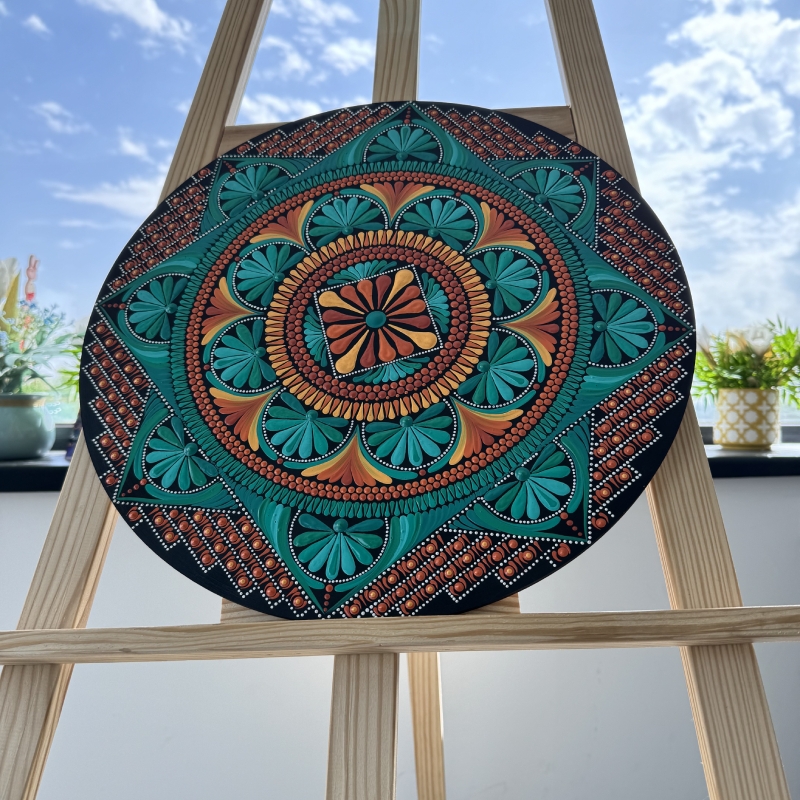 Sunt incantata sa va prezint ultima pictura Mandala pe care am realizat-o in aceasta frumoasa combinatie de culori????