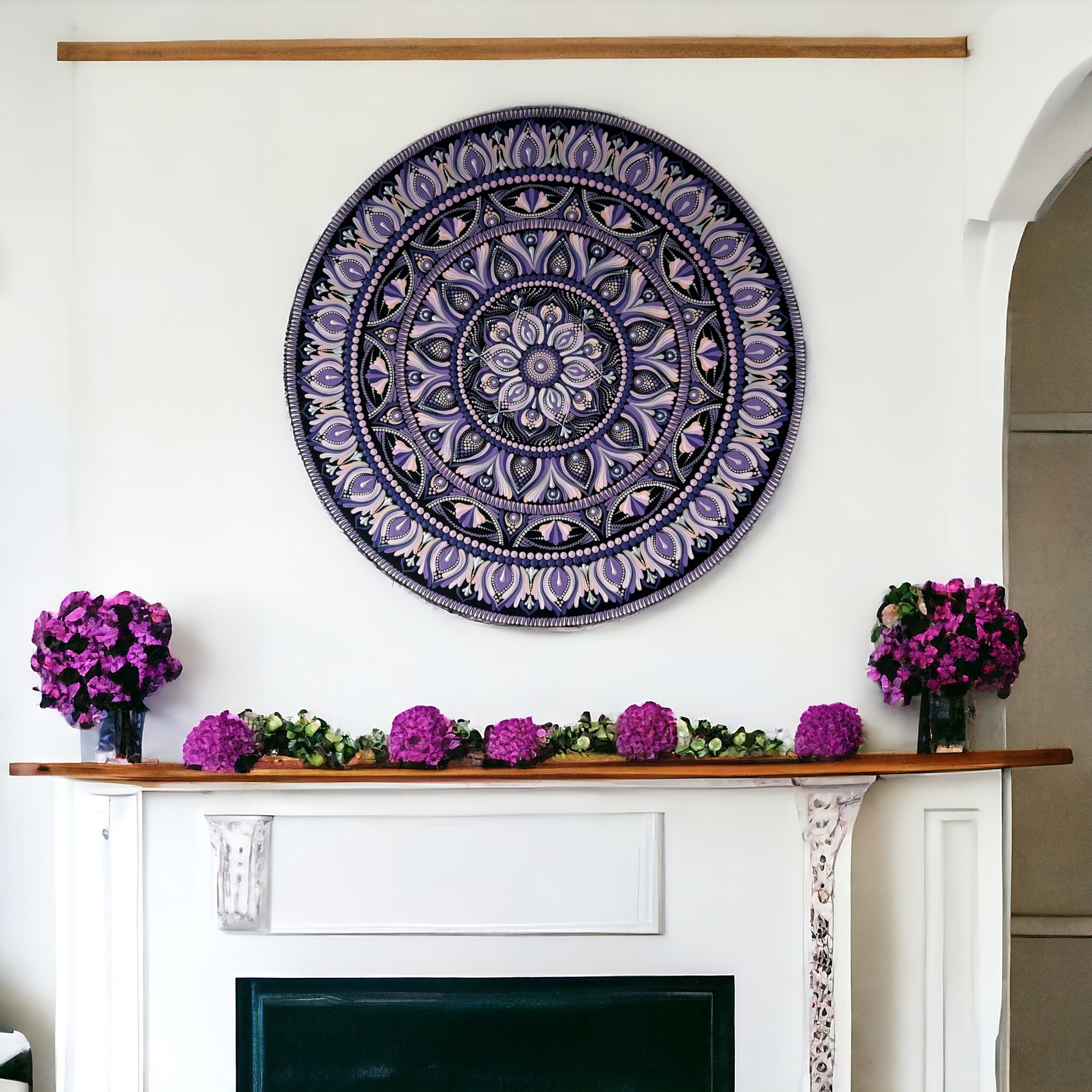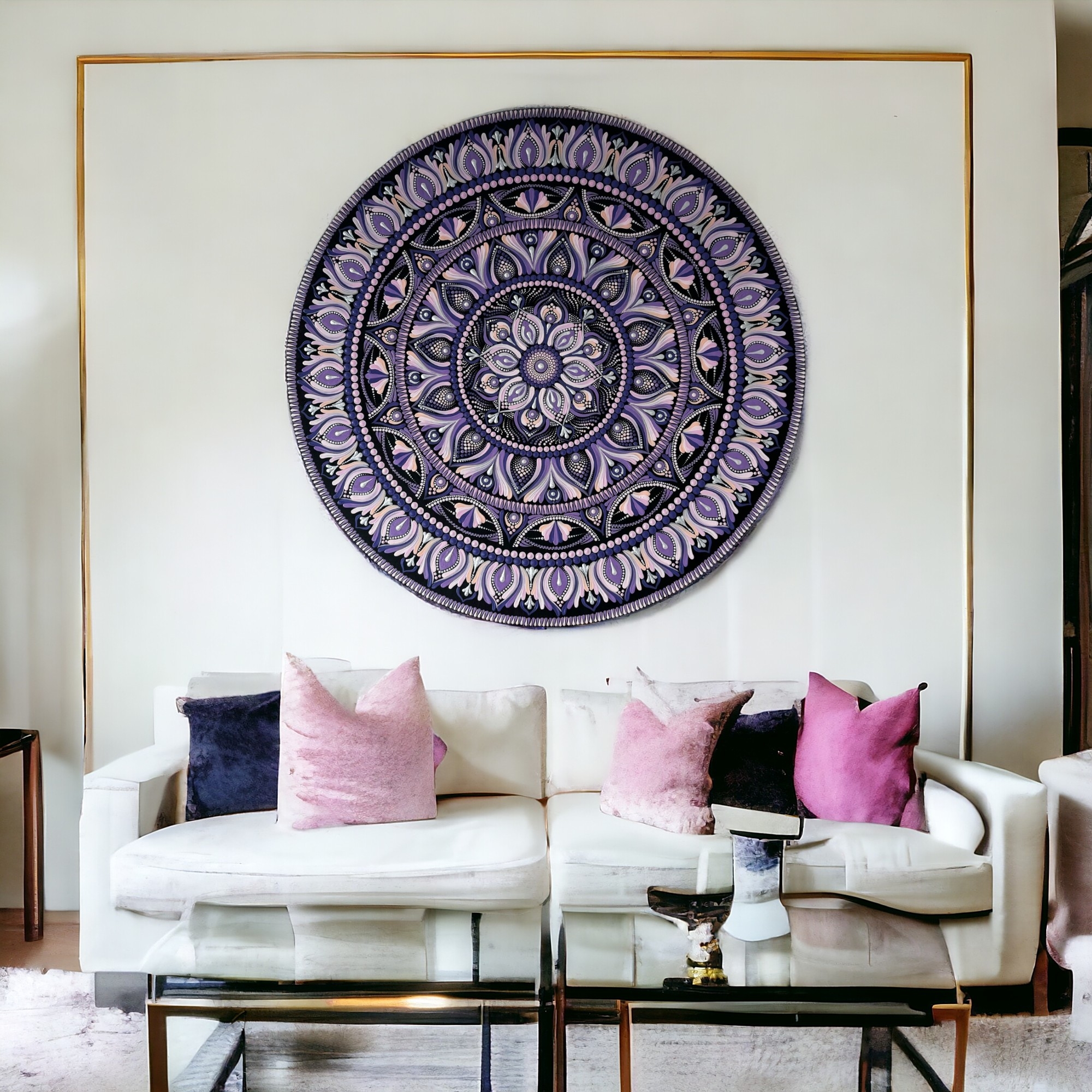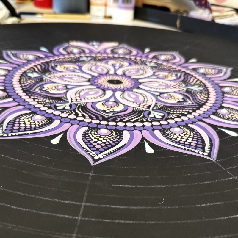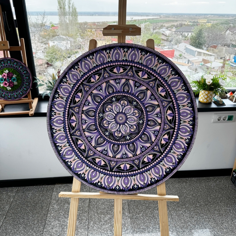 Tablou Mandala pictat in tehnica punctului cu acrilice.