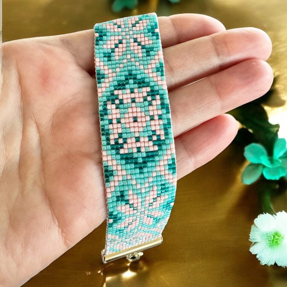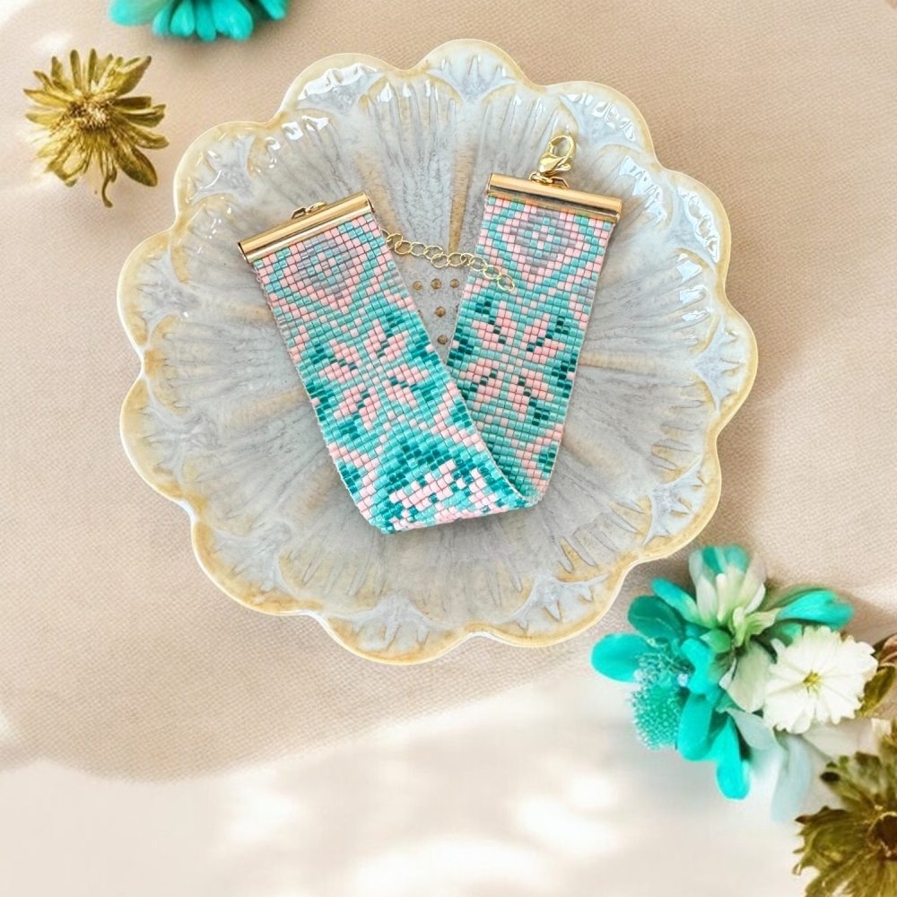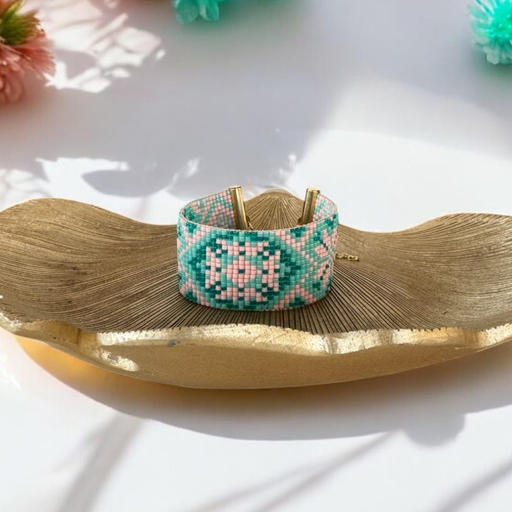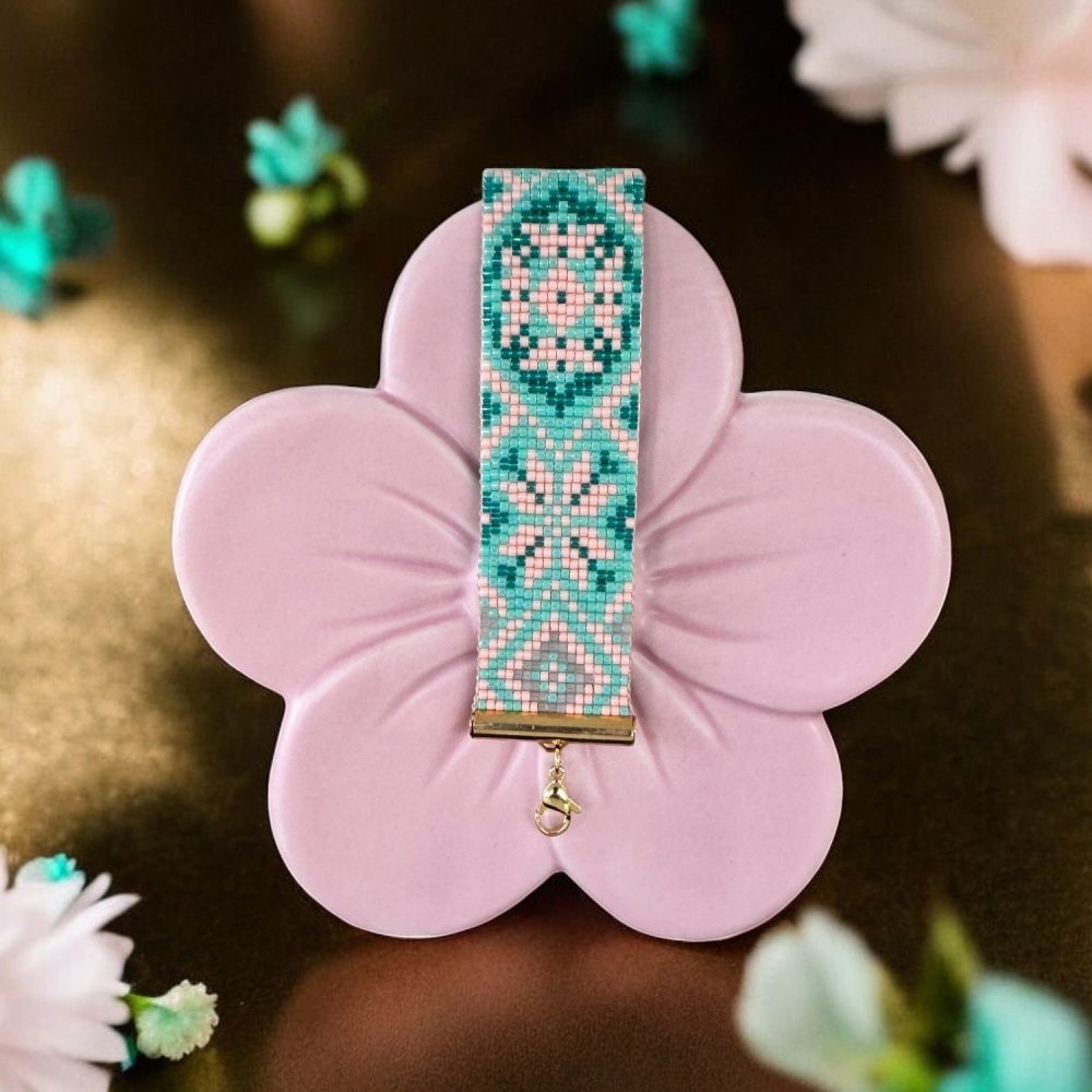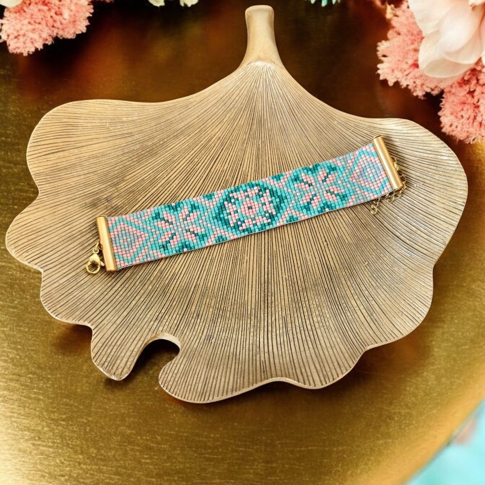 Bratara Nellie este bijuteria perfecta pentru femeile care iubesc eleganta discreta si culorile vibrante. Realizata manual din margele Miyuki de calitate premium, bratara imbina armonios nuantele delicate de turcoaz si somon, oferind un design deosebit care atrage toate privirile.