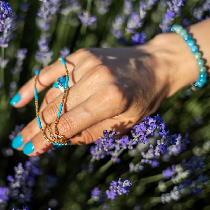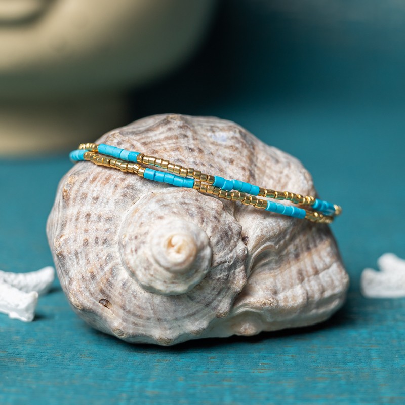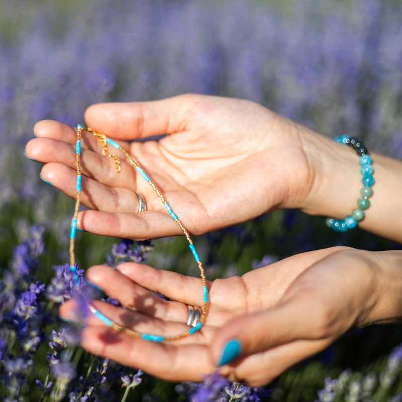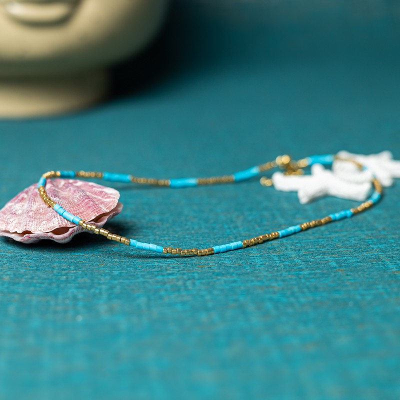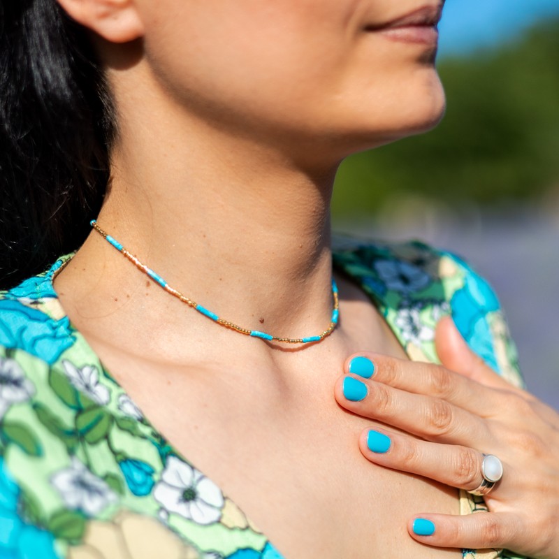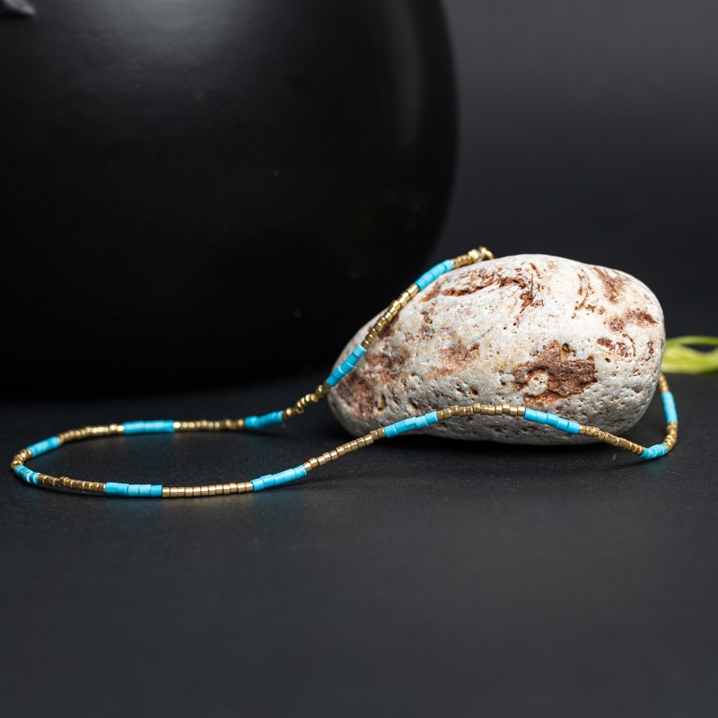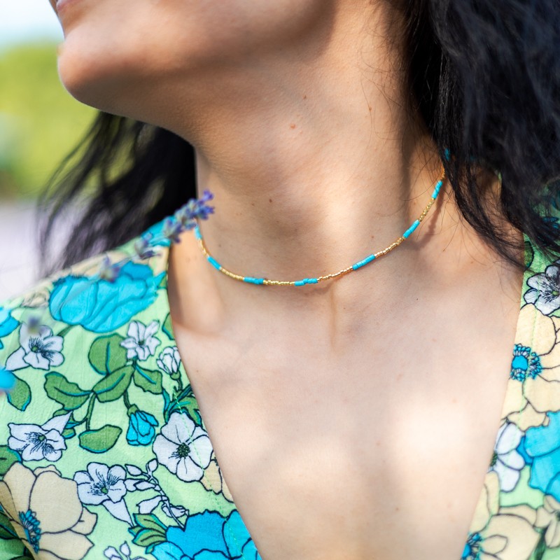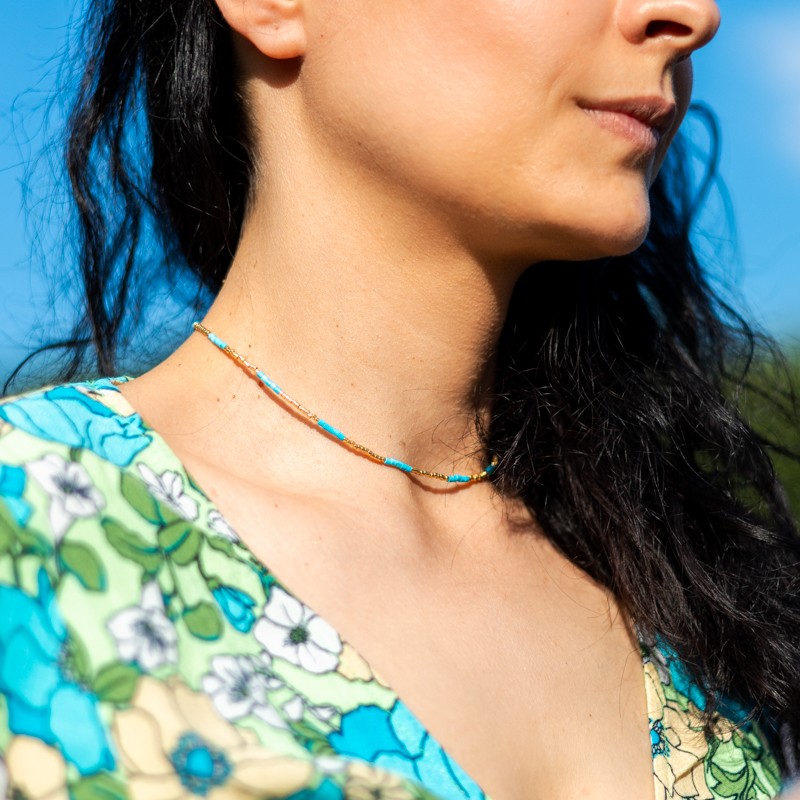 Colierul in nuante de turcoaz si auriu iti aduce mai aproape marea si soarele.