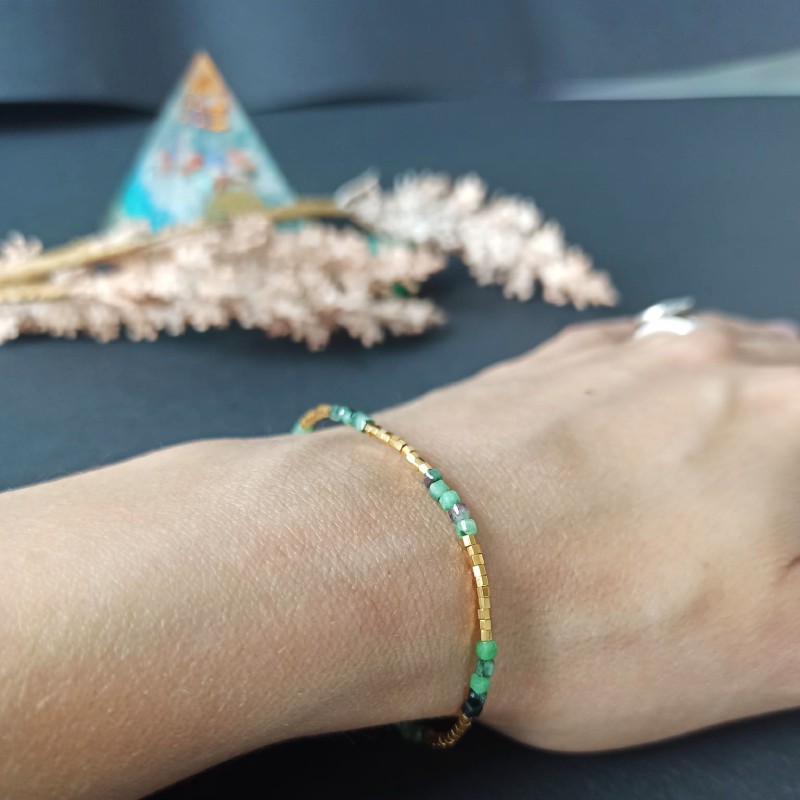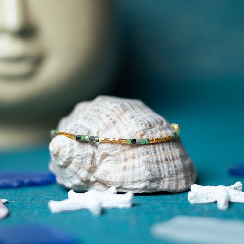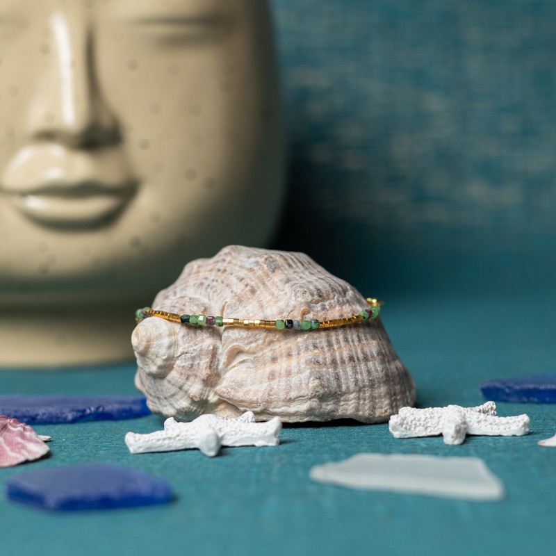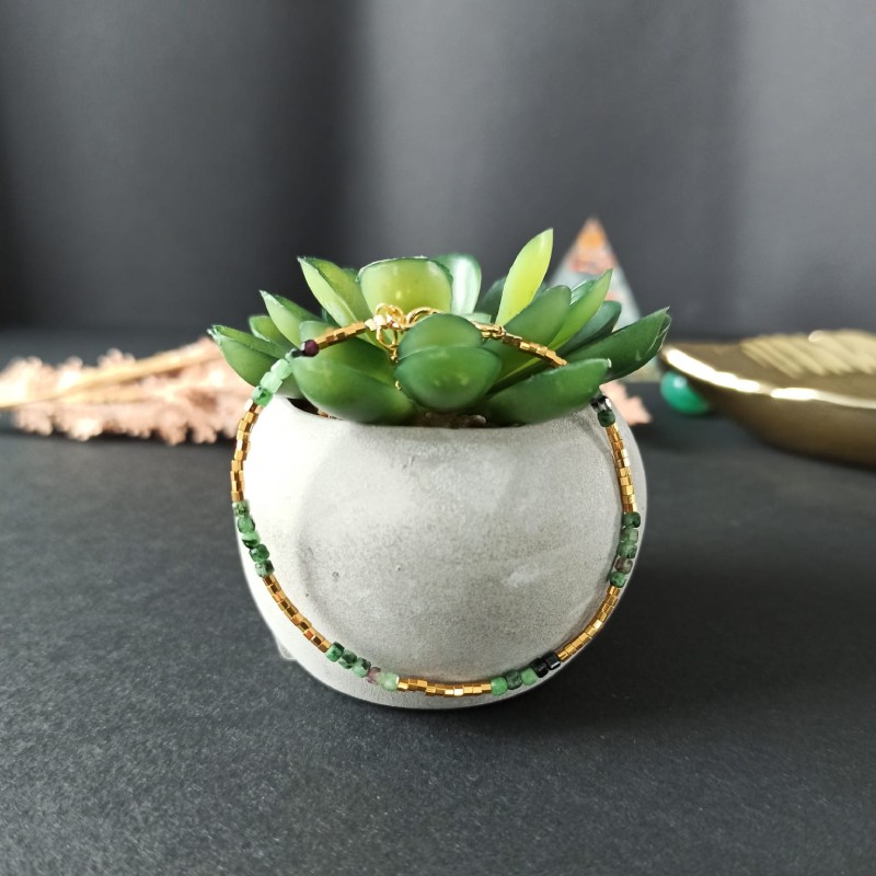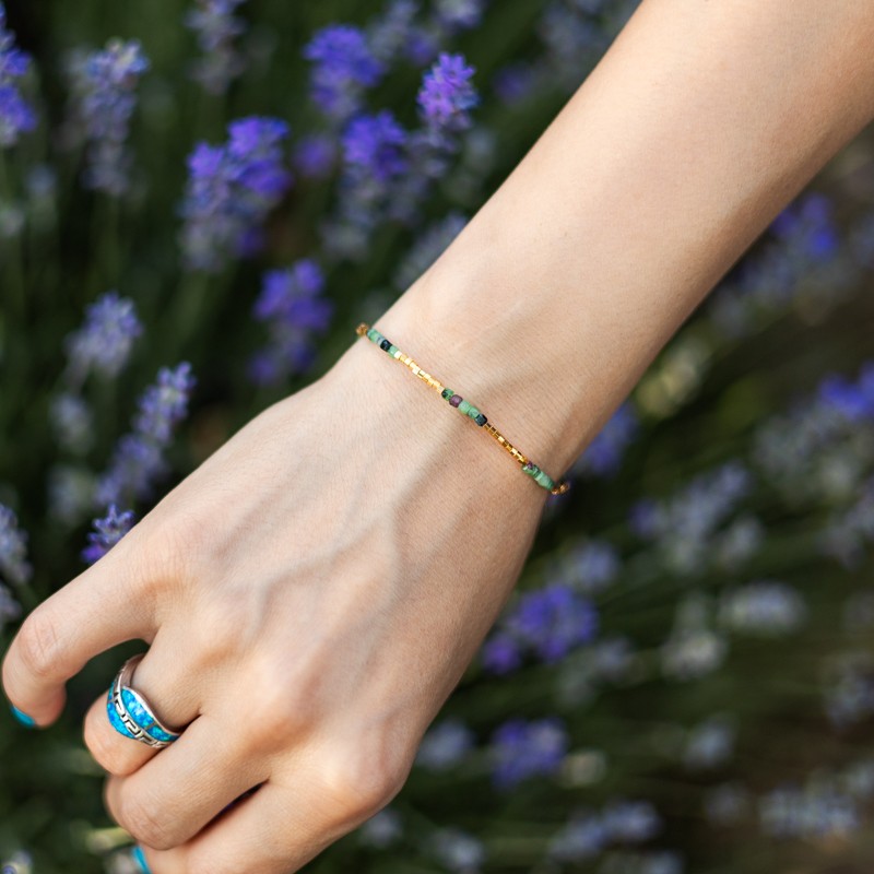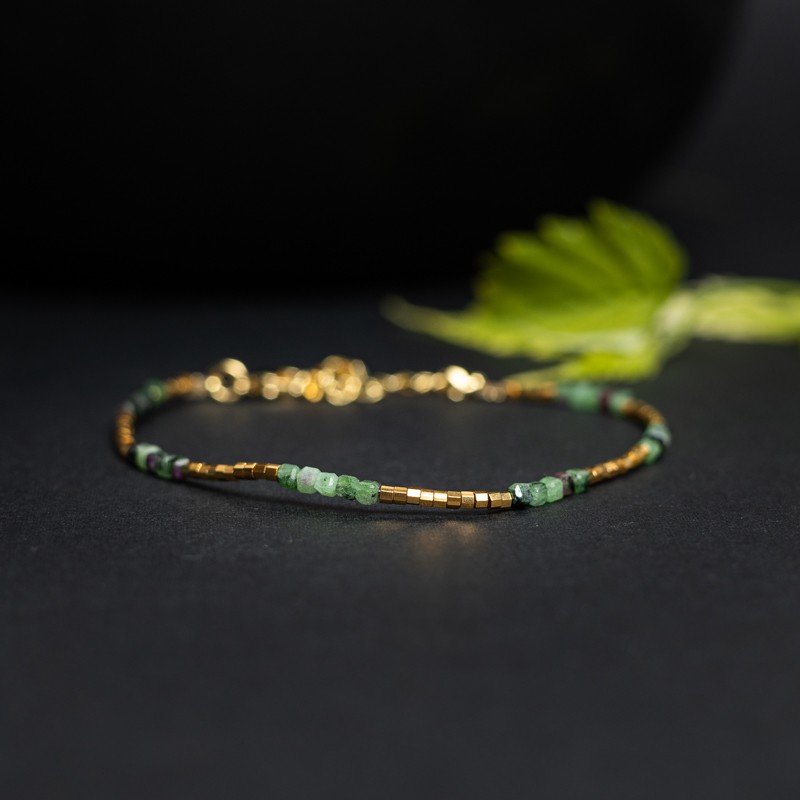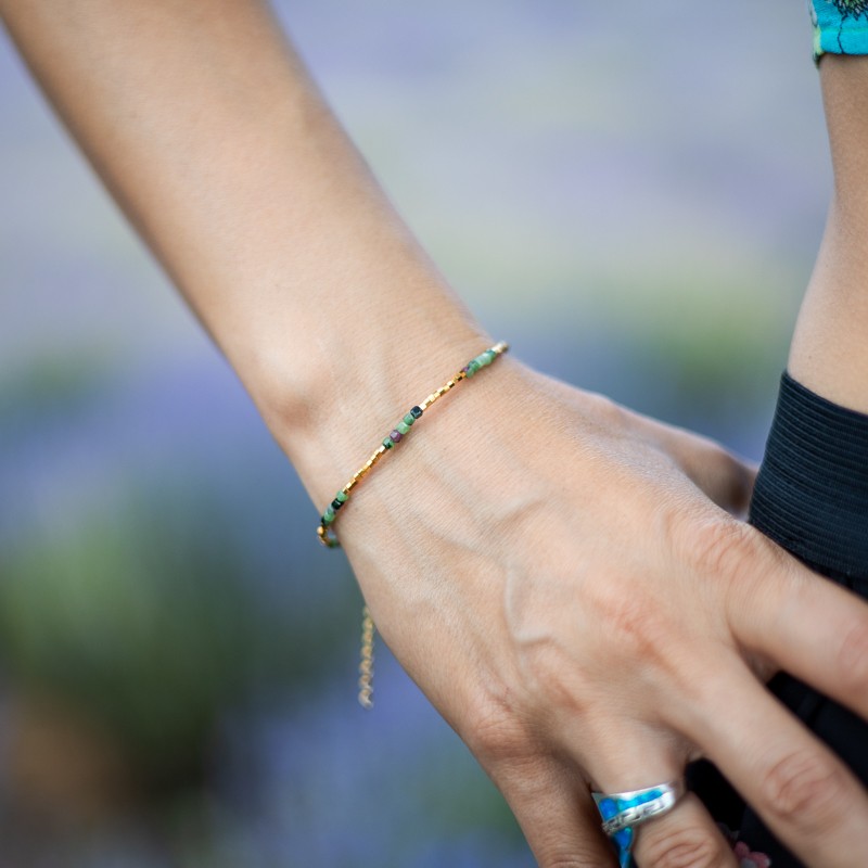 Bratara delicata Boho din pietre semipretioase de Rubin Zoisit placata cu aur de 18K