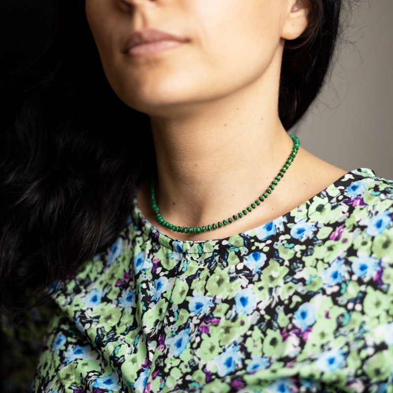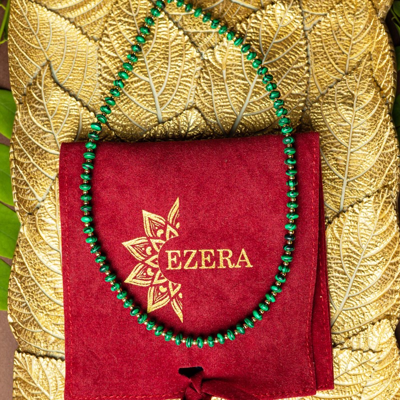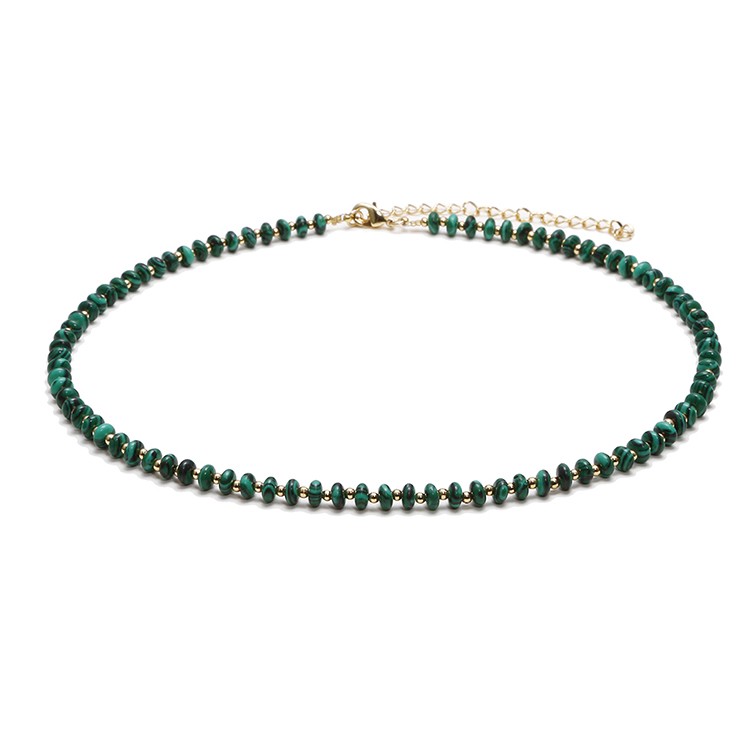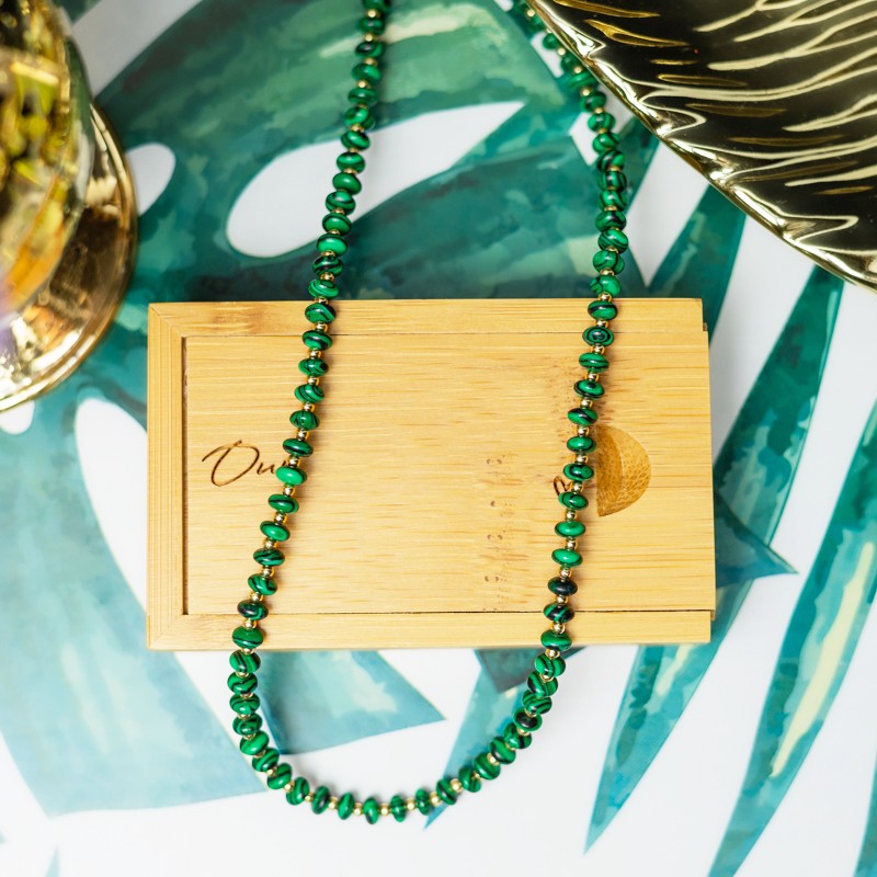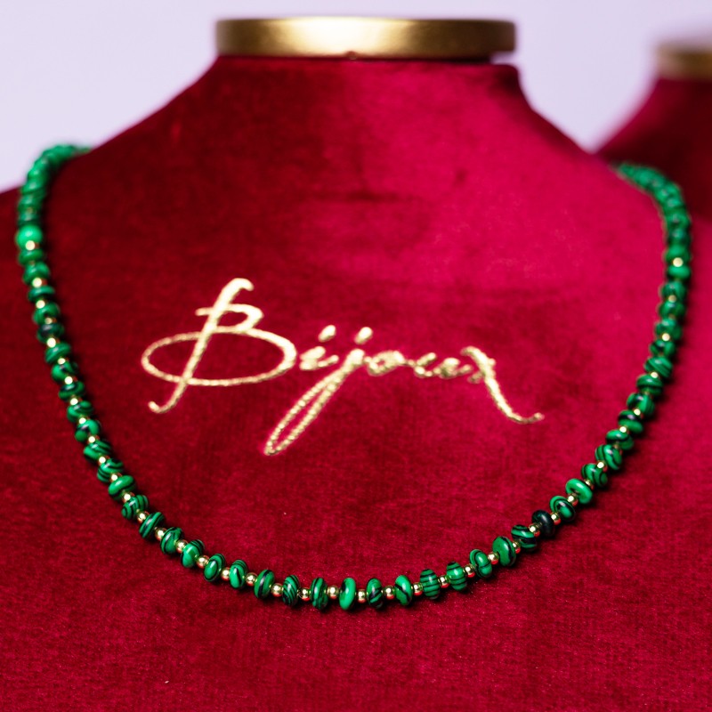 Accesorizeaza-ti tinuta cu noul colierul choker Kamia din Malachit sintetic, placat cu aur de 18K.